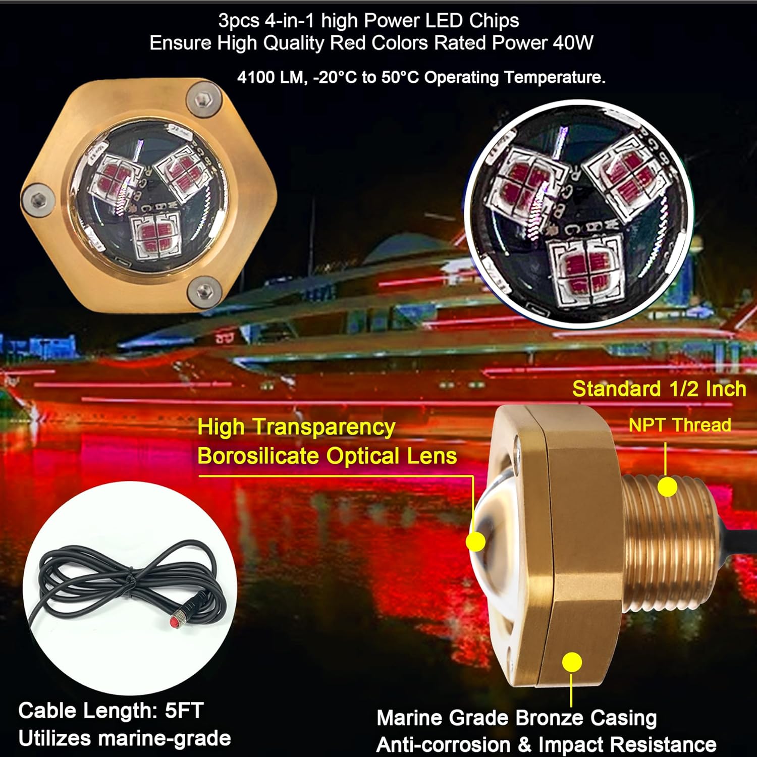 【Corrosion Resistance Supplies】boat plug mild designd with Marine-grade anti-corrosion Sturdy Bronze Housing,Excessive Transparency Borosilicate Optical Lens,Submerged Cable,guaranteeing longevity even in harsh aquatic circumstances.