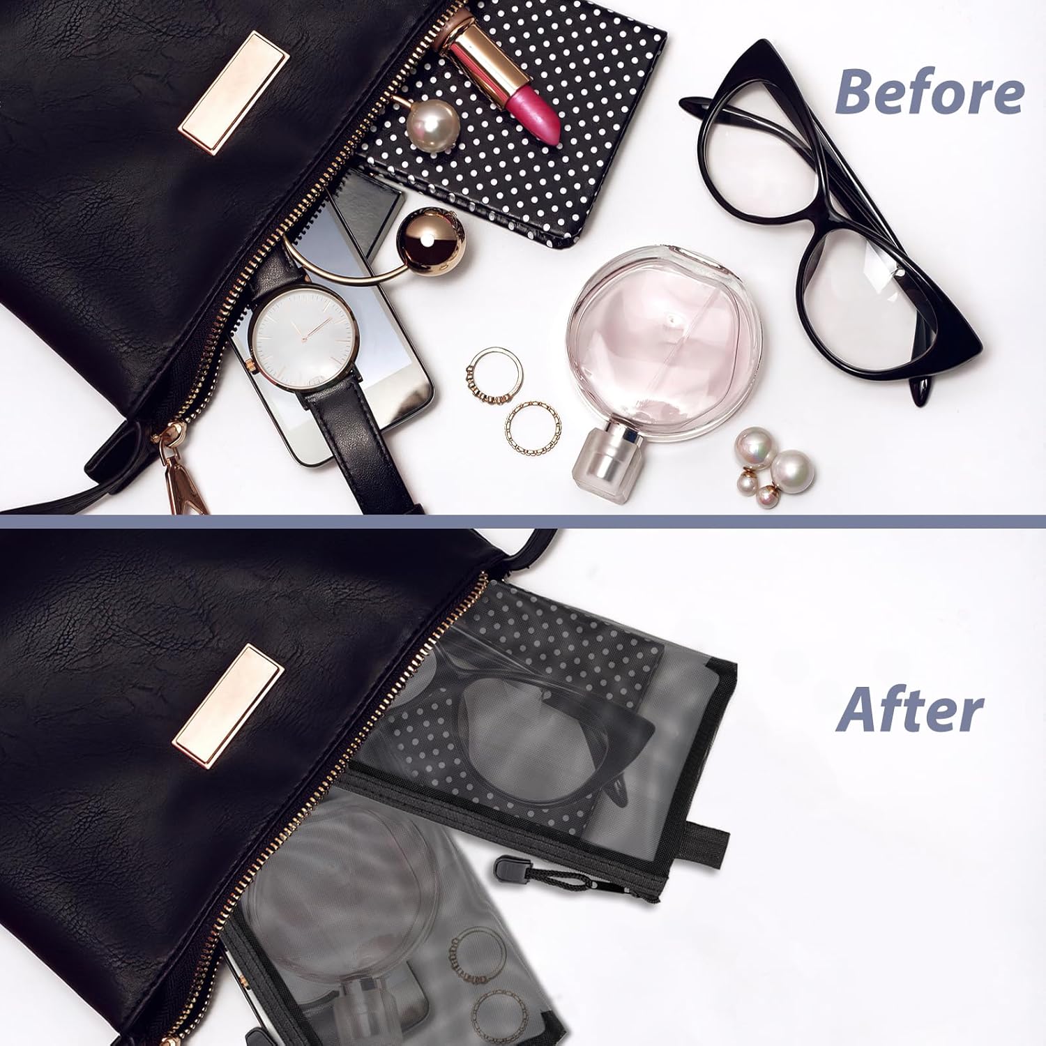 Broad Vary of Makes use of: These zippered mesh beauty baggage will not be restricted to cosmetics; you will discover them numerous makes use of, corresponding to storing artwork provides, organizing digital equipment, and even packing snacks for a day journey; cosmetics, corresponding to basis bottles or vainness mirrors, appropriate for storing lipstick, eyeliner or travel-sized skincare merchandise, even hair clips or cotton swabs, the clear design lets you simply discover and entry your objects, saving you time.