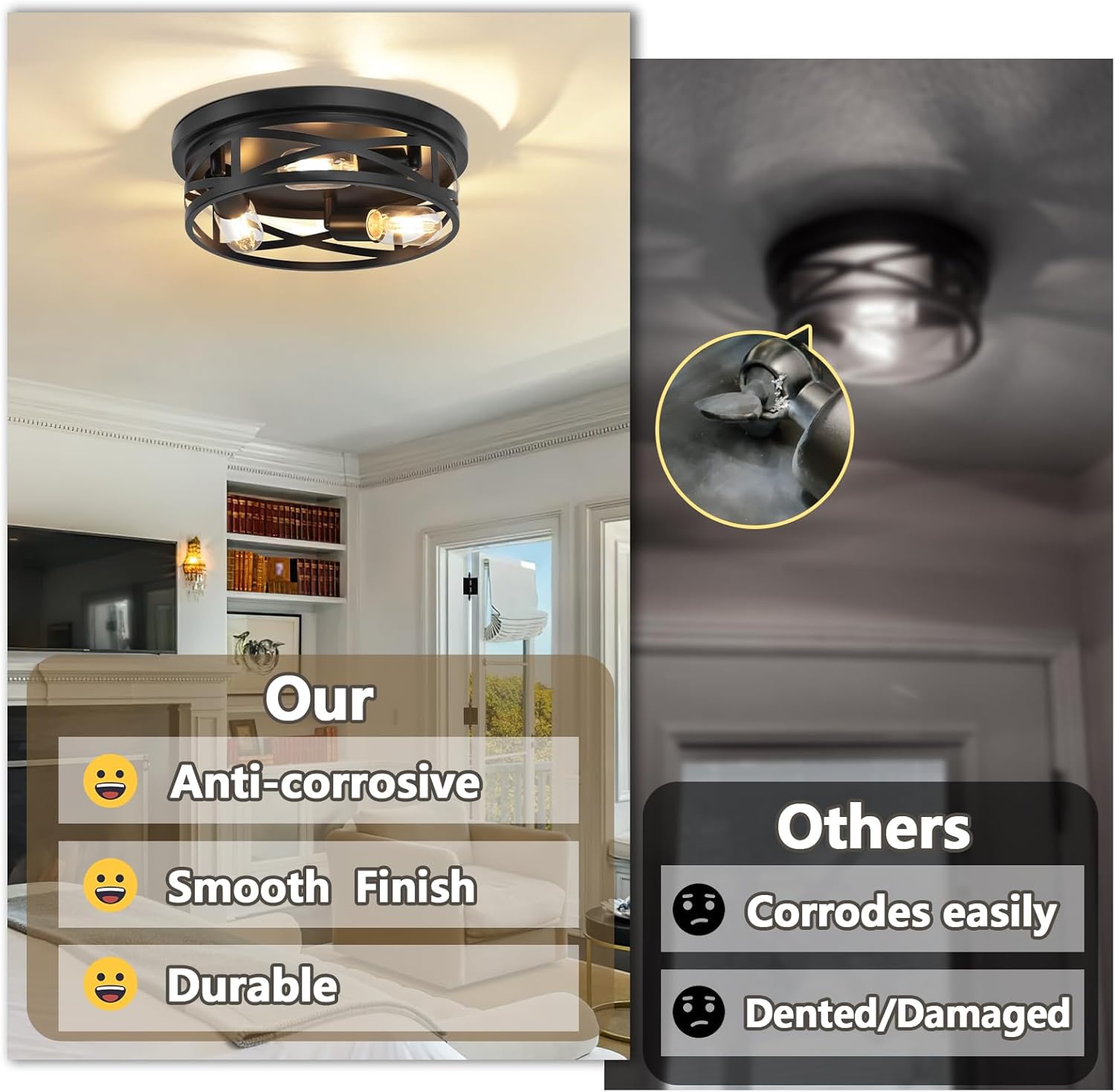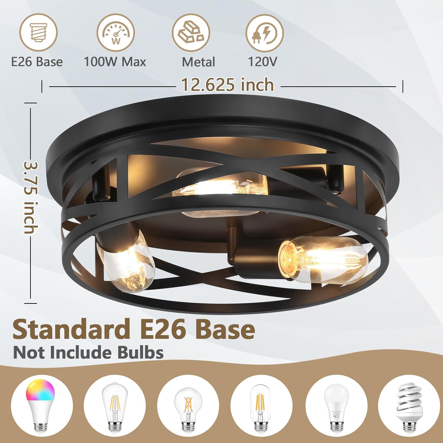 【Farmhouse Flush Mount Ceiling Gentle Fixture】Our black ceiling lights options an open steel cage design, which permits for straightforward bulb alternative with out disassembly. Measuring 3.75 inches in peak and 13 inches in size, this 3-light flush mount ceiling fixture emits vivid, 360-degree lighting, illuminating your total room and casting stunning shadows on the ceiling. It’s the good addition to your house decor