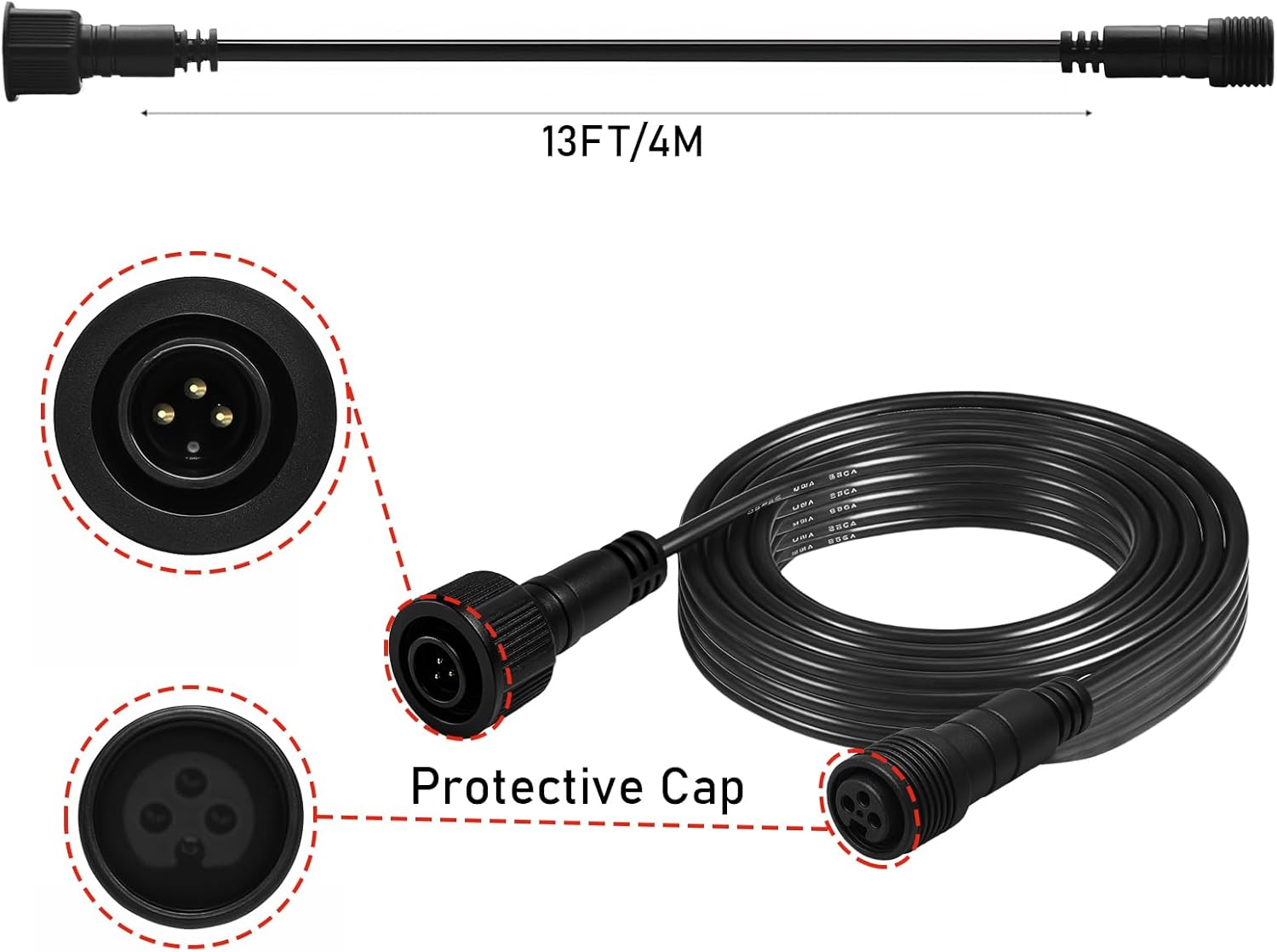 𝗨𝗦𝗘𝗥-𝗙𝗥𝗜𝗘𝗡𝗗𝗟𝗬 𝗗𝗘𝗦𝗜𝗚𝗡: The 4M/13FT size supplies flexibility to place lights precisely the place you need them.male-to-female extension cable can simply set up with none instruments,simply align the arrows, insert, and tighten to safe the connection.The plug-and-play design is right for outside actions, yard/vacation/festive decorations, or year-round backyard lighting.
