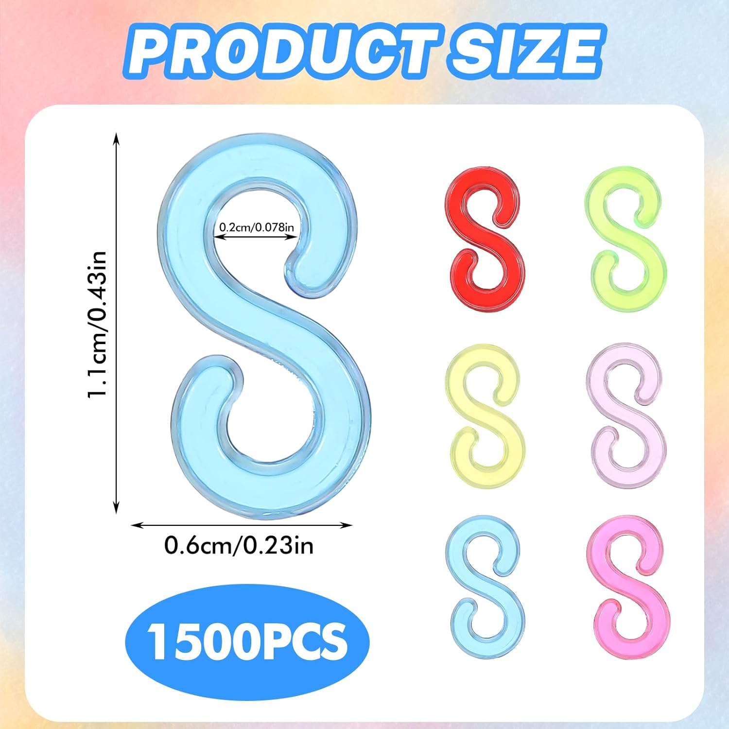 1500 Pcs Rubber Band S Clips Loom Bands – DIY Craft Accessories – Clip On – Transparent, Purple, Red, Pink, Yellow, Green, Blue
