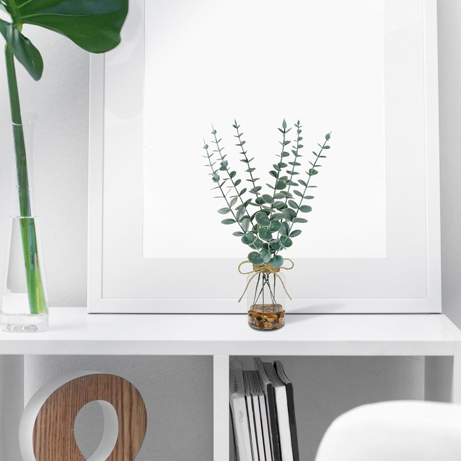 Premium Supplies: Our fake eucalyptus branches are crafted from high-quality plastic, providing a lifelike texture. The accompanying vase, manufactured from sturdy glass, boasts a wonderful and beautiful design