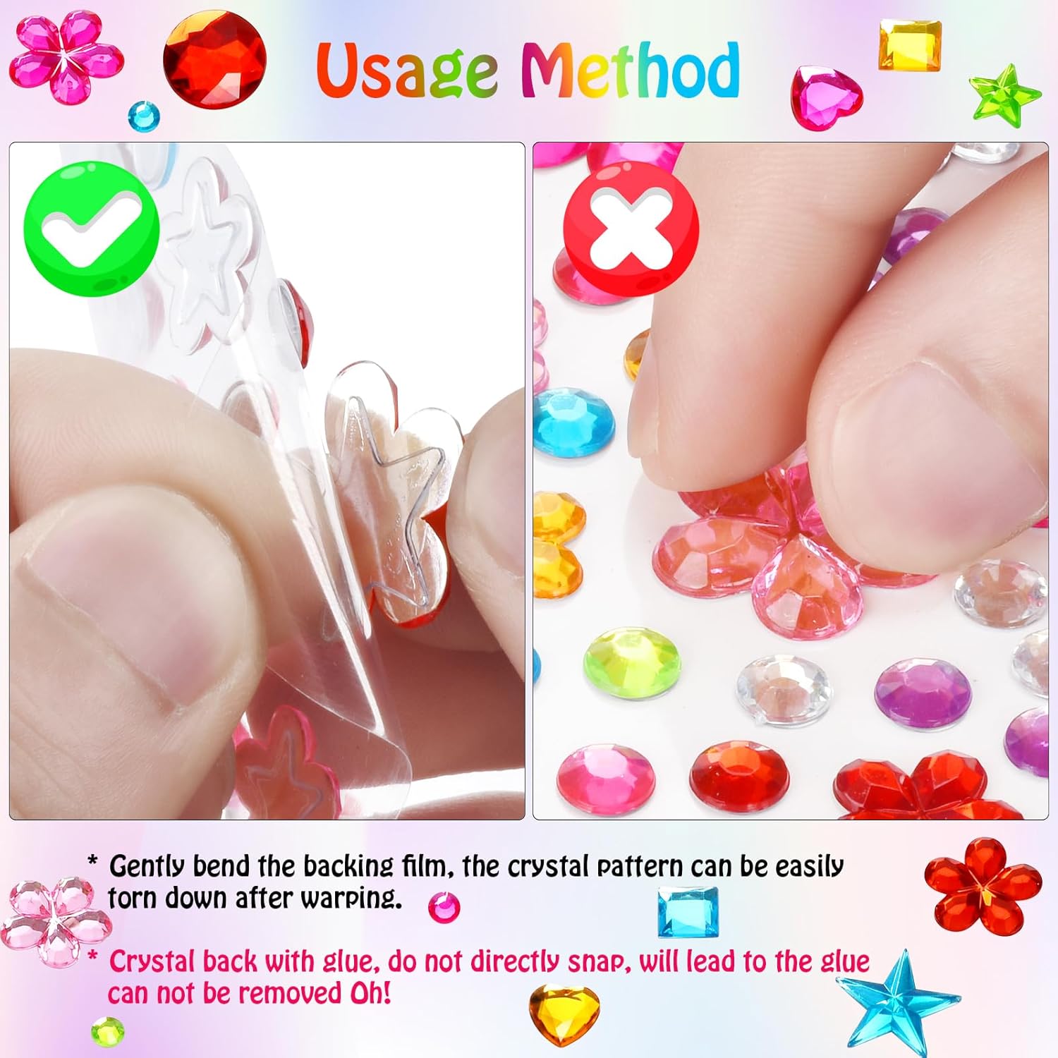 2.Self-adhesive Gem Stickers: every pretty gem comes with glue, gently bend the backing movie, the crystal gemstone may be simply eliminated when it warps up, (The again of the crystal with glue, don’t straight snap, will end result within the lack of ability to take away the glue Oh)