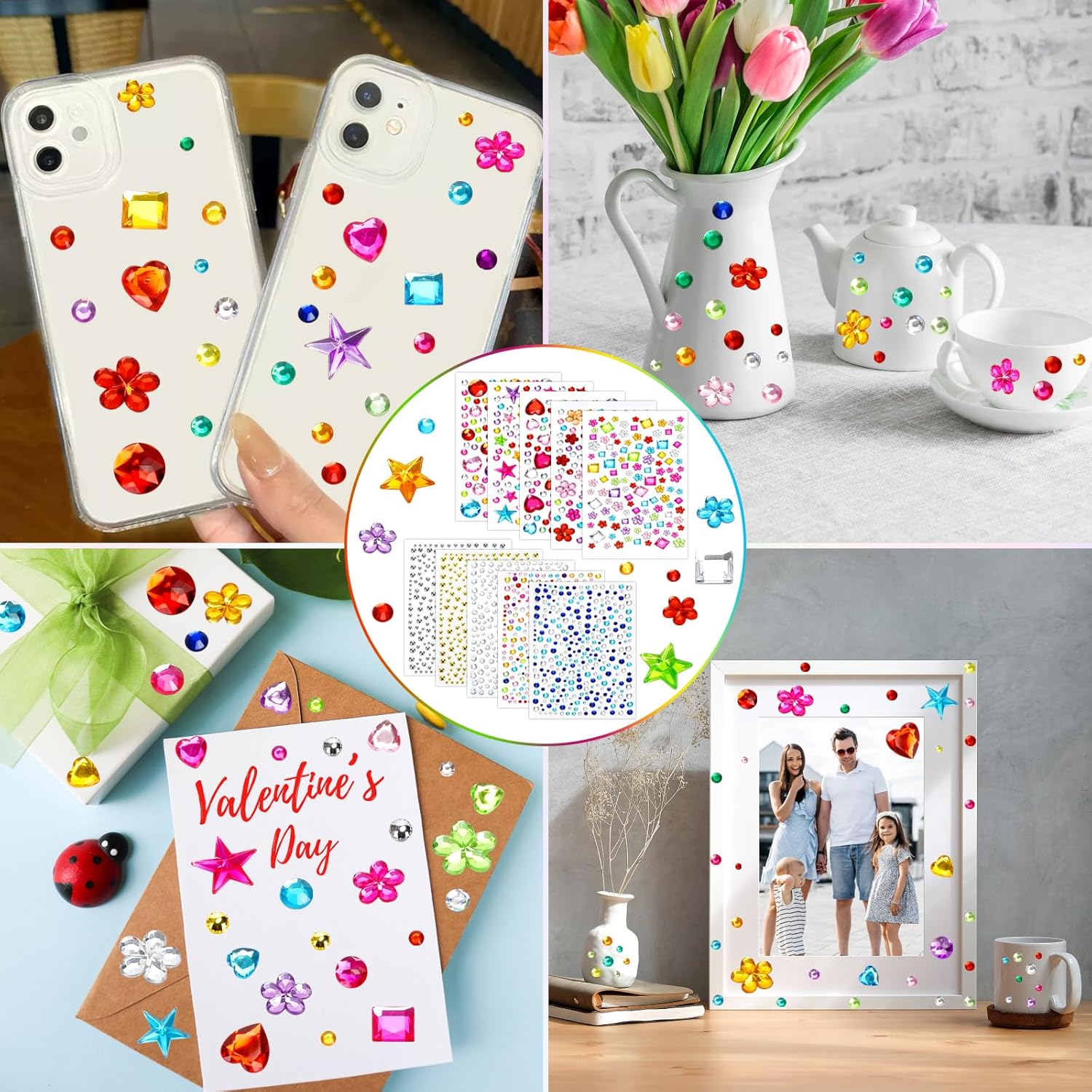 1.Acrylic Gem Stickers: these glowing gem stickers are manufactured from acrylic, every gemstone sparkles, you need to use these stickers for DIY decorations & crafts, make-up ornament