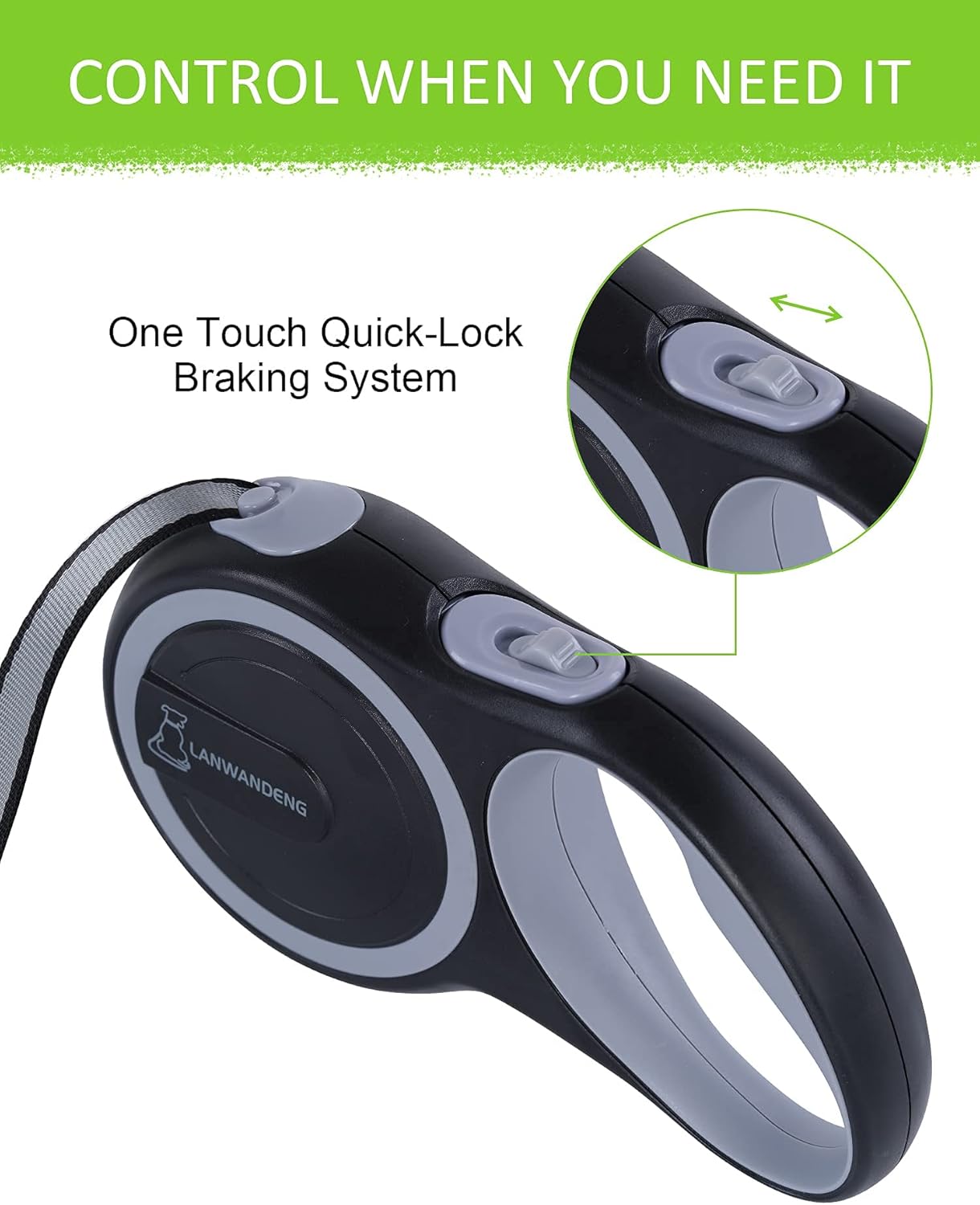 One-Handed Brake,Pause,Lock: This pet leash is provided with a quite simple locking mechanism, fast Lock And Unlock Function – Simple Roll-On and Roll-Off With Your Thumb.