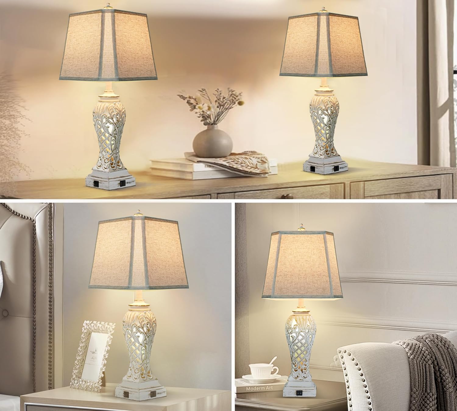 2 Lighting Modes & Hole Night time Lights:WEITERS distinctive farmhouse desk lamp gives a number of lighting choices. The bottom of the bedside lamp has two ON/OFF switches, which respectively management the principle gentle and evening gentle. Merely press the button and you’ll regulate the lighting as per your wants. The higher and decrease lights could be turned on collectively for max lighting vary. This lamp is ideal for bedtime, learning or playtime