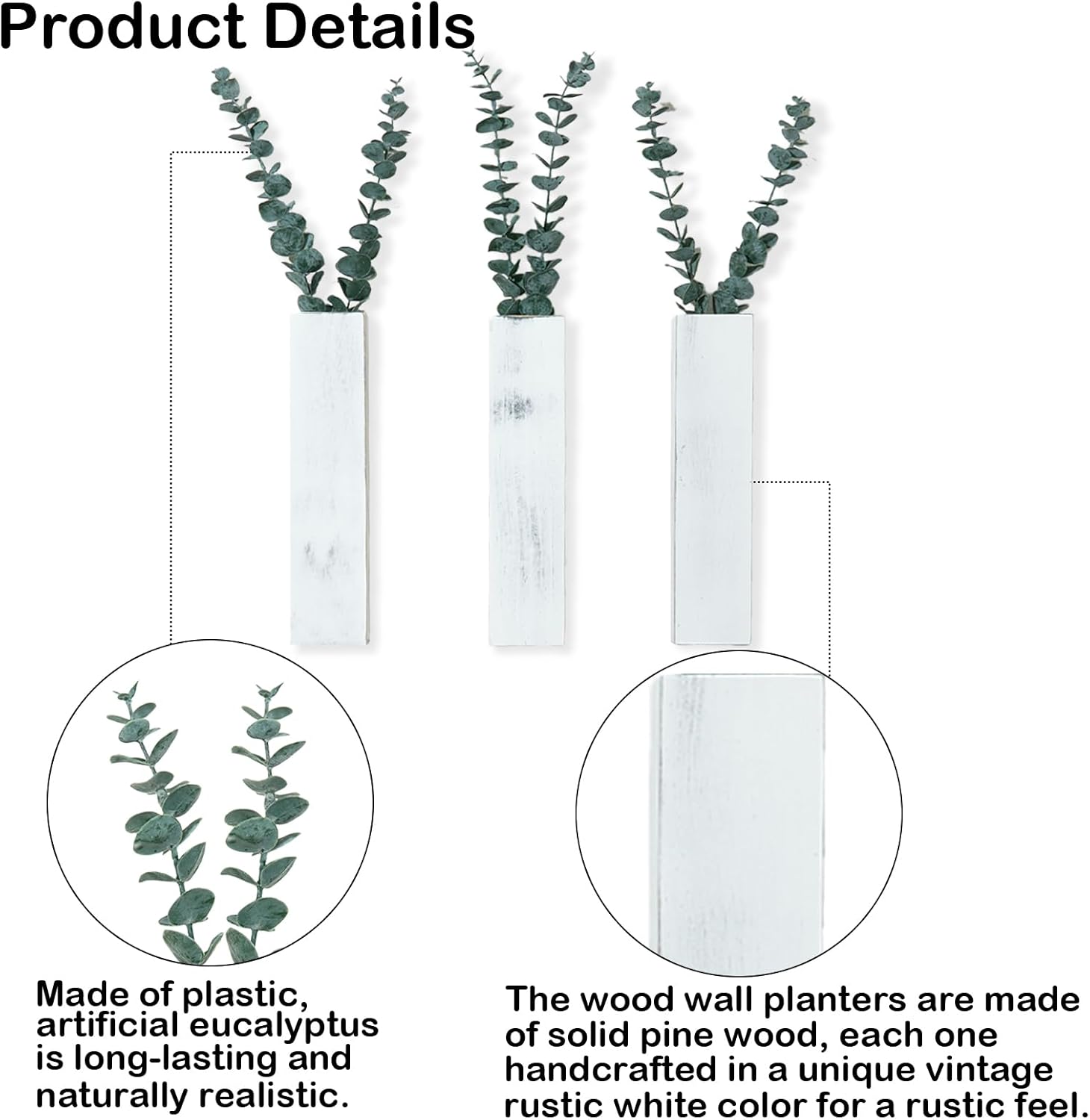 High quality Picket Materials: Wooden wall planters are constructed from strong pine wooden and every one is handmade with a country white shade for a country really feel, making certain sturdiness and long-lasting use. Synthetic eucalyptus is product of plastic and has a inexperienced aesthetic that’s long-lasting and natural-looking with none care. Wall planters with synthetic crops add a contact of sentimental inexperienced for a serene ambiance and rustic appeal to your own home property workplace.