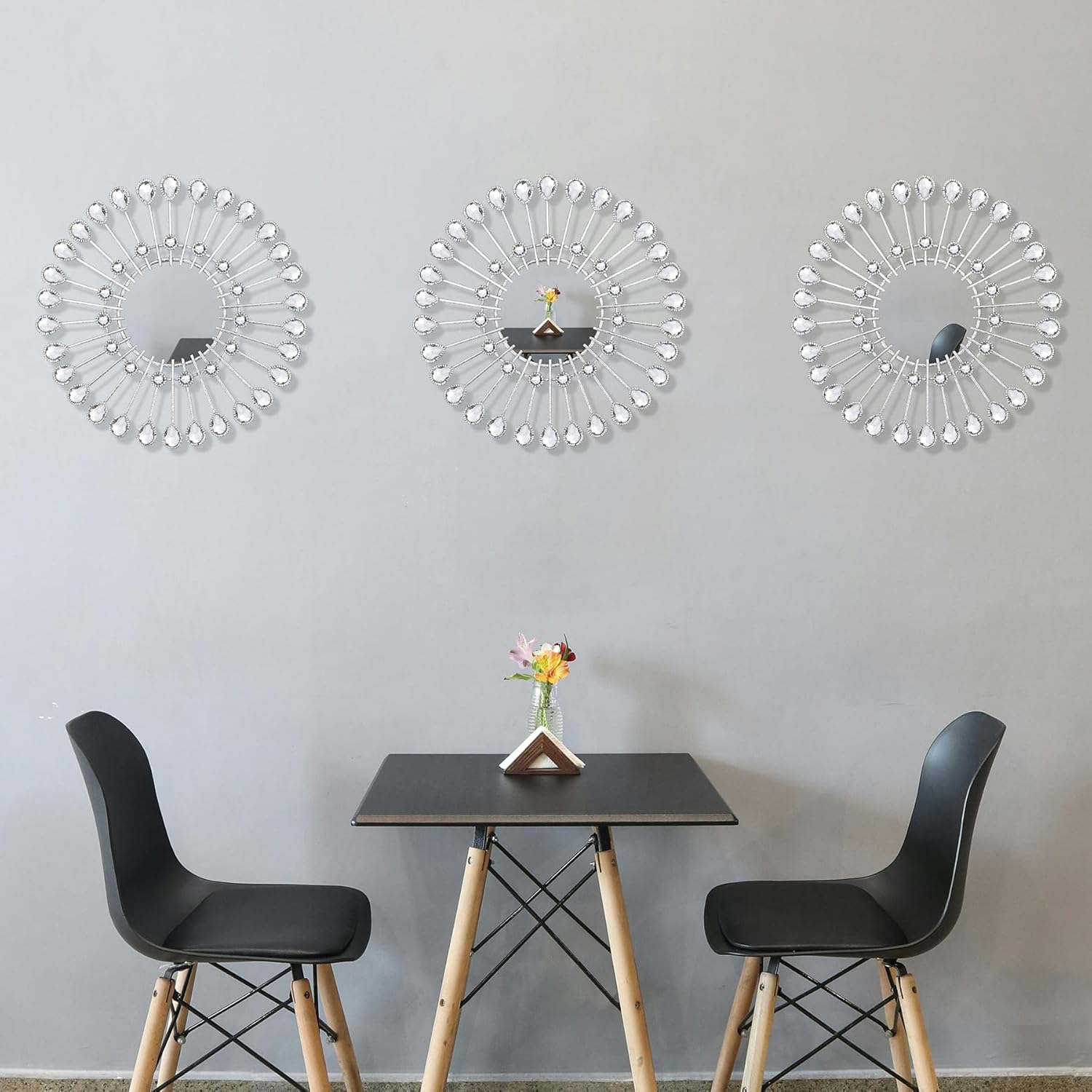 TINGDONG 3 PCS Steel Sunburst Mirrors for Wall, Ornamental Rhinestones Starburst Wall Mirrors Dwelling Décor, Steel Wall Artwork for Dwelling Room Bed room Entryway 9inch*9inch