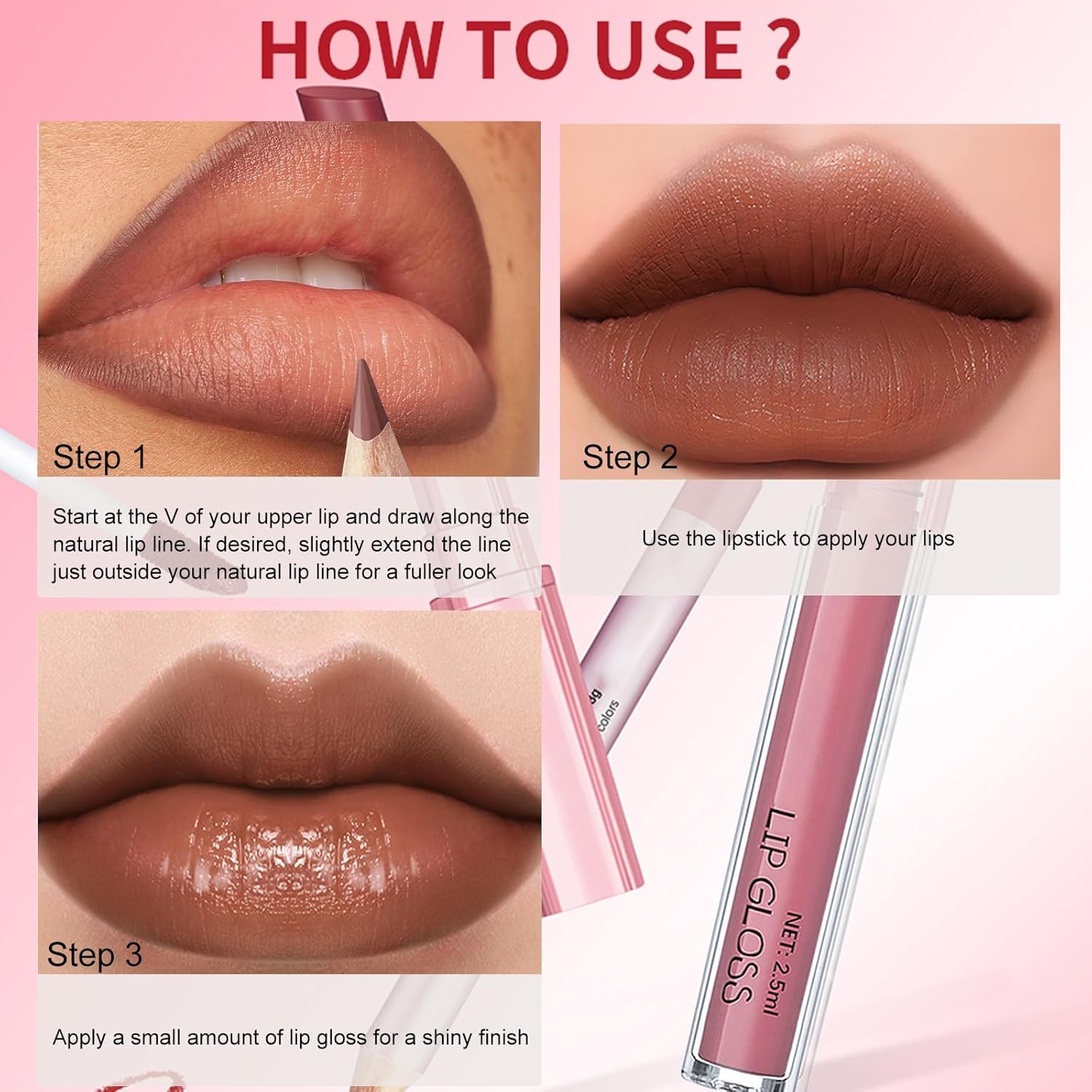 3Pcs Lip Liner and Lipstick Combo Matte Lip Liner Pencil Hydrating Lip Gloss Pack Long Lasting Plumping Lip Kit for Women Makeup High Pigment Non-Sticky Liquid Lipstick Pen Precise shaping, #1