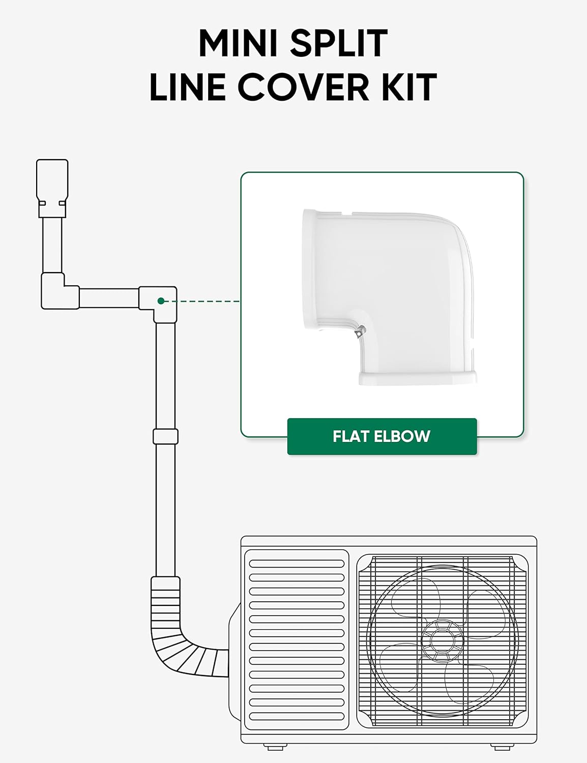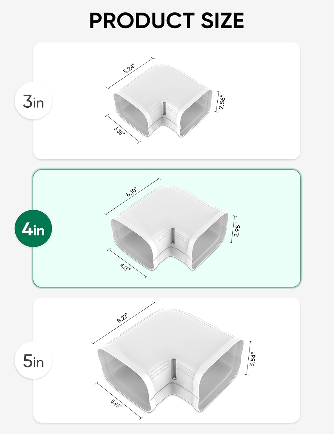 PRODUCT SIZE: The Flat Elbow accent for 4″ Mini Cut up PVC AC Line Set Cowl Package. The Flat Elbow Size: 6.10″ Width: 4.13″ Peak: 2.95″