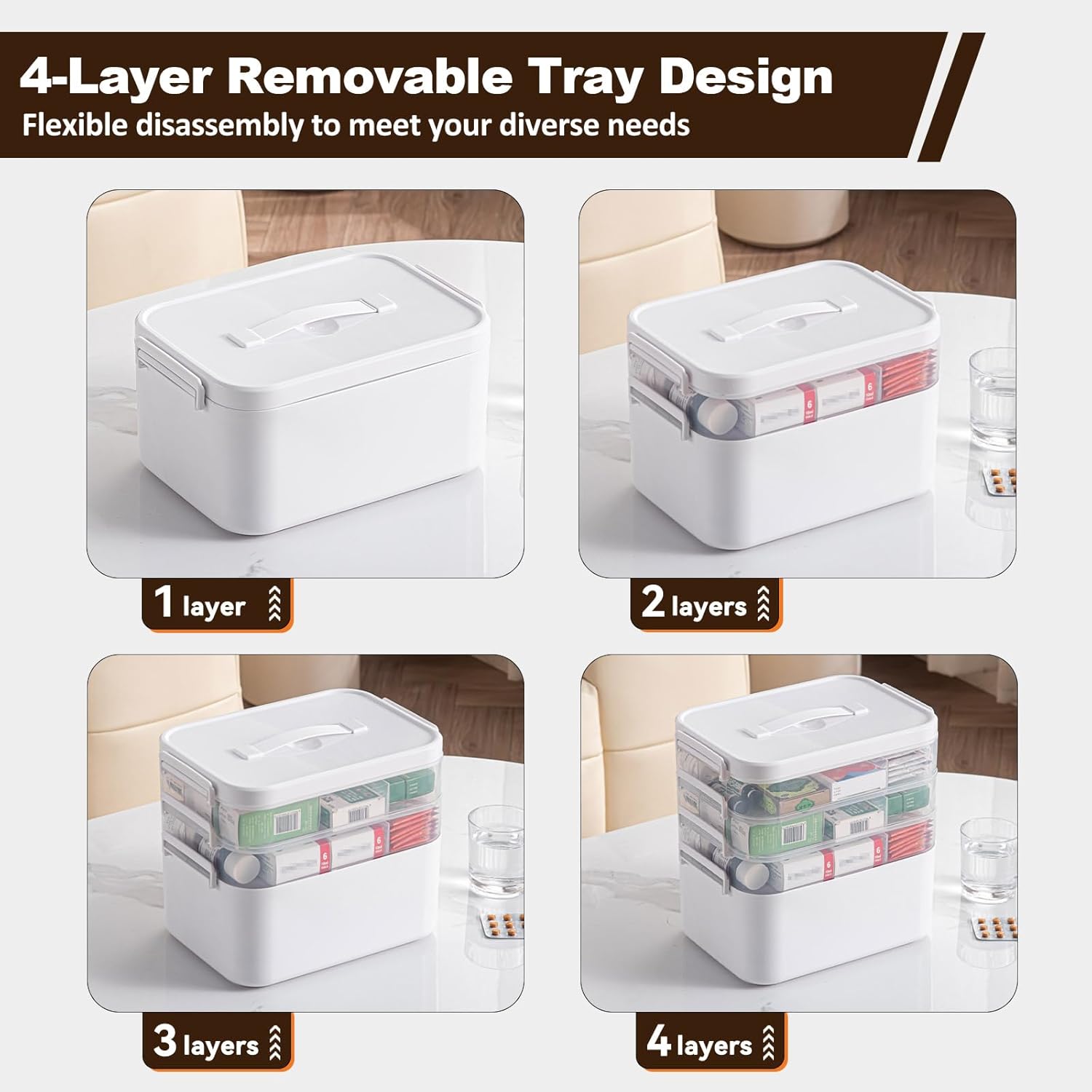 Adjustable Medication field: The variety of layers may be flexibly switched to fulfill your various wants. First support drugs may be positioned on the first layer, every day drugs on the 2rd layer, spare drugs on the third layer and the white backside layer protects your privateness and does not make the saved gadgets look cluttered.
