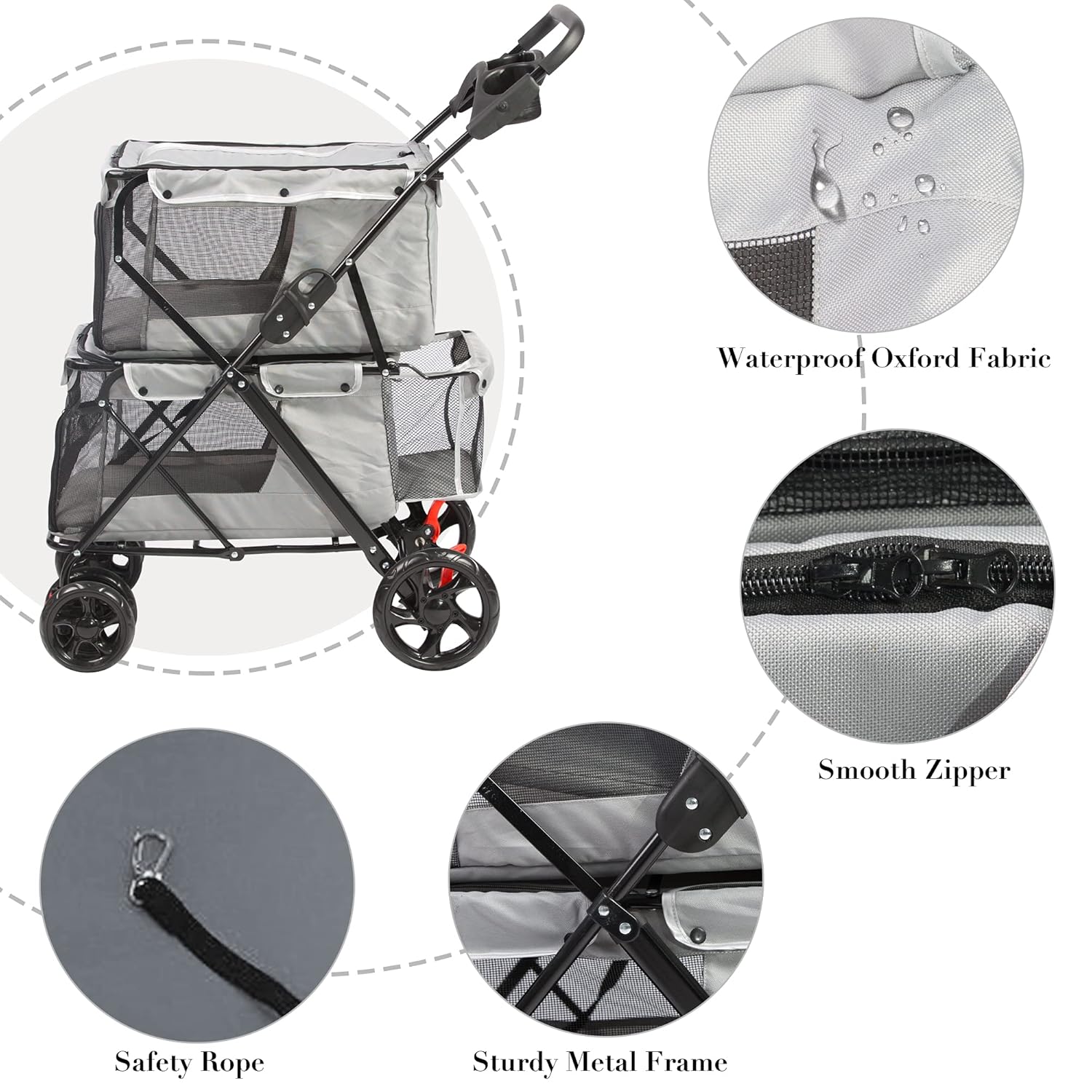 Double Deck Stroller | Not solely designed for small canine, cats, puppies, and kittens, however can be utilized for different small medium sized animals.Weight Capability:44 lb (22 lb+22 lb)