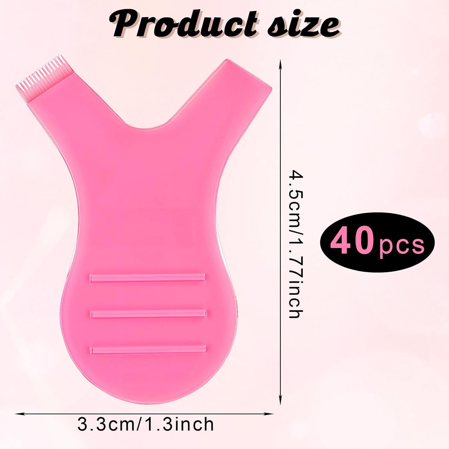 40 Pcs Y Lash Lift Tools Lash Lift Comb Y Shape Eyelash Brush Y Shape Lash Combs Eyelash Perming Brush for Lash Grafting Extension(Pink, Clear)