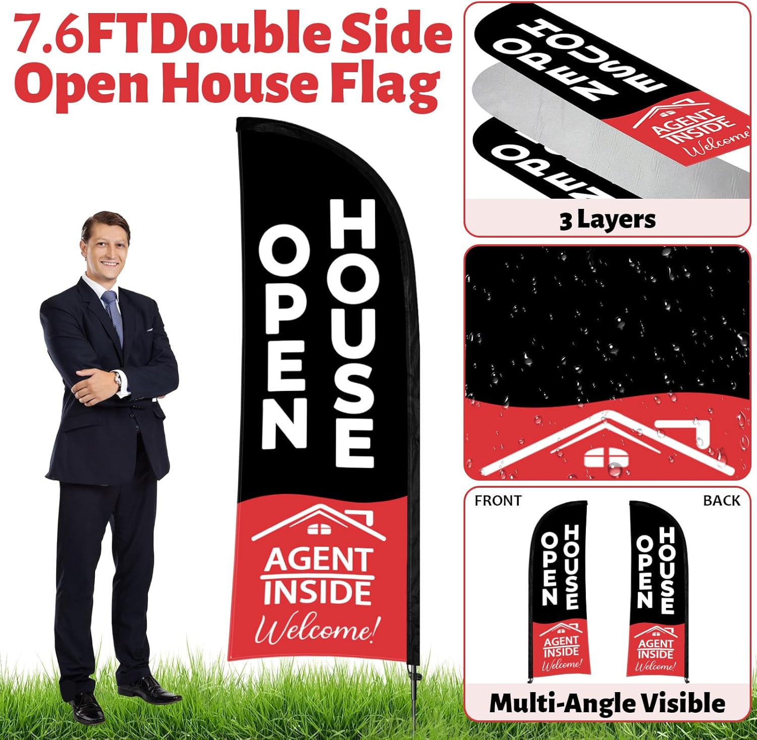 44 Pcs Open Home Provides:Package deal Included: 7.6 x 5.4 Ft:Double-sided Flag with Poles (1x Drawstring bag), 5 Pack x Actual Property Sale Indicators with Stakes Double Sided:16 x 12 inches ; 30 PCS x Open Home Balloons, 1 Roll x Curling Ribbon, 2 PCS x Balloon Glue Level, 1 PCS x Marker Pen, 4 PCS x Water Bottle Grasp Tags, Open home indicators for actual property agent and home on the market indicators by proprietor.
