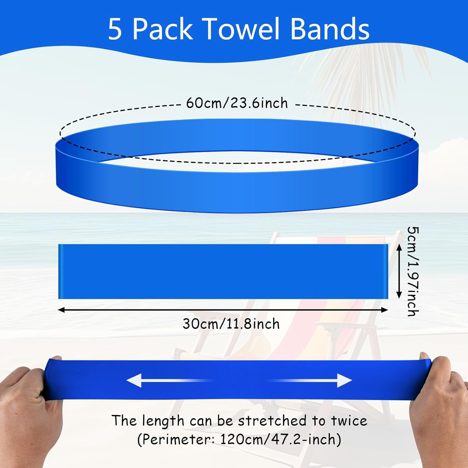 Dimension: The towel bands measure 30 x 5 cm/11.8 x 1.97 inches. The towel clips are elastic and could be stretched to 65cm/25.6 inches. It matches most sizes of seashore chairs. It’s light-weight and simple to hold and with out taking on house or weight. Please Word: they solely match common sized solar loungers, not massive sized solar loungers. To make sure your expertise, please examine the dimensions rigorously earlier than buying