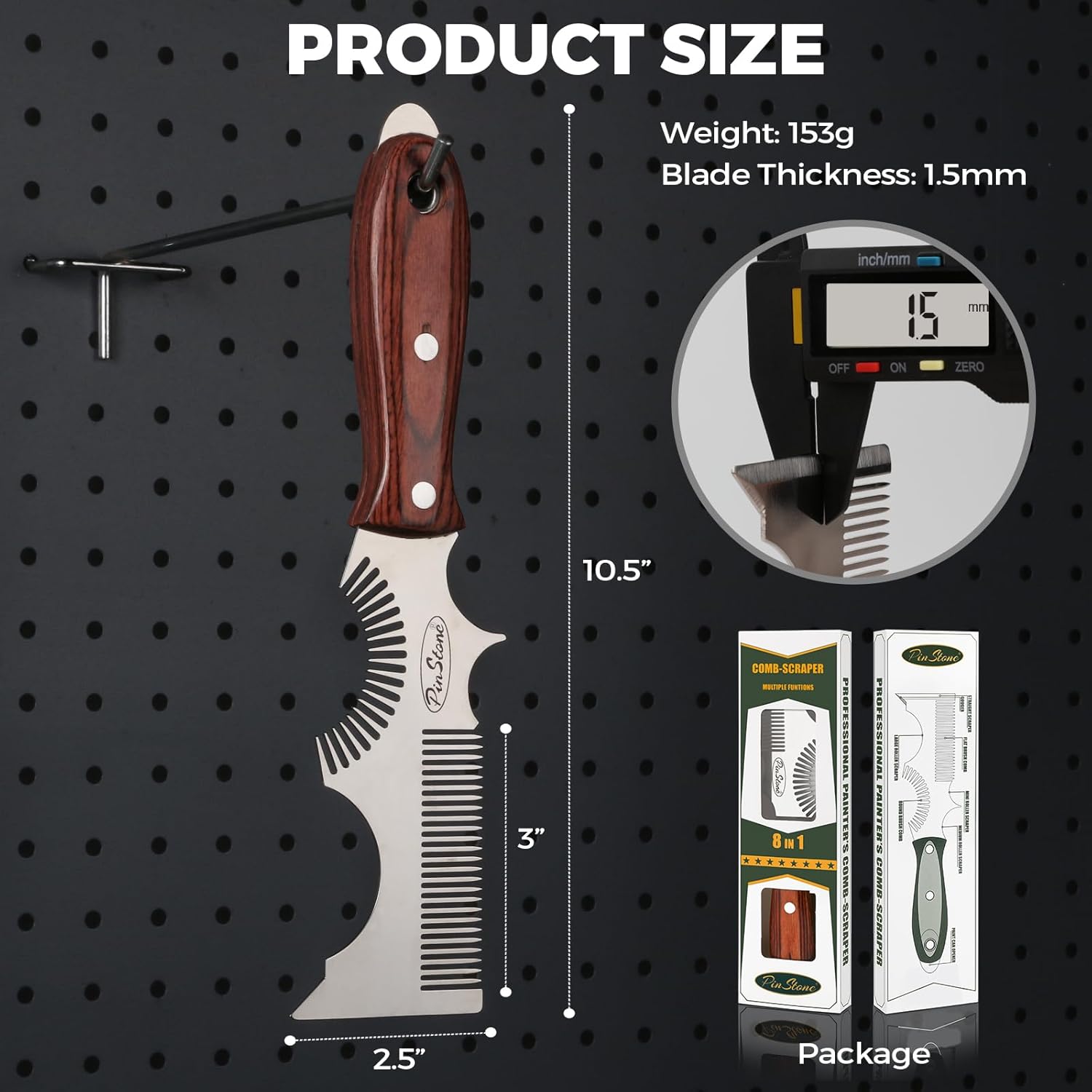 【Versatile 8-In-1 Paint Instruments】Can be utilized as paint brush cleaner comb for flat, angled, spherical paint brush, Paint curler cleaner instrument for two”, 4″, 9″, 12″, 18″ paint curler covers, Can opener instrument, Straight scraper, Putty knife scraper, Gouger, Bottle opener. Vital portray instruments for skilled and pastime painters.