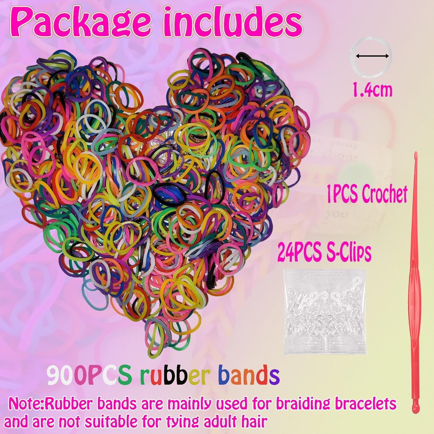 ๐ใ925 Units of Rubber Bandsใ:The rubber equipment contains 900PCS rubber bands, 24 S-clips,1 crochet.