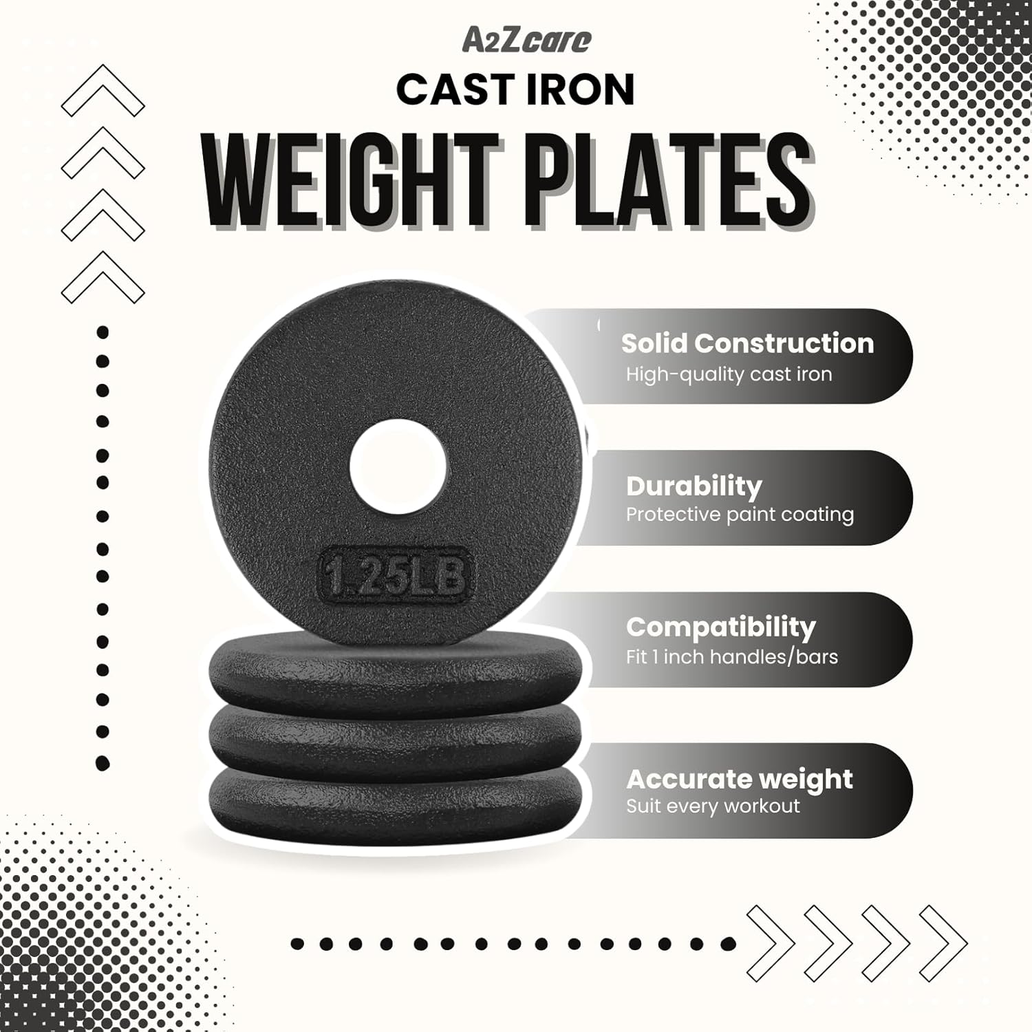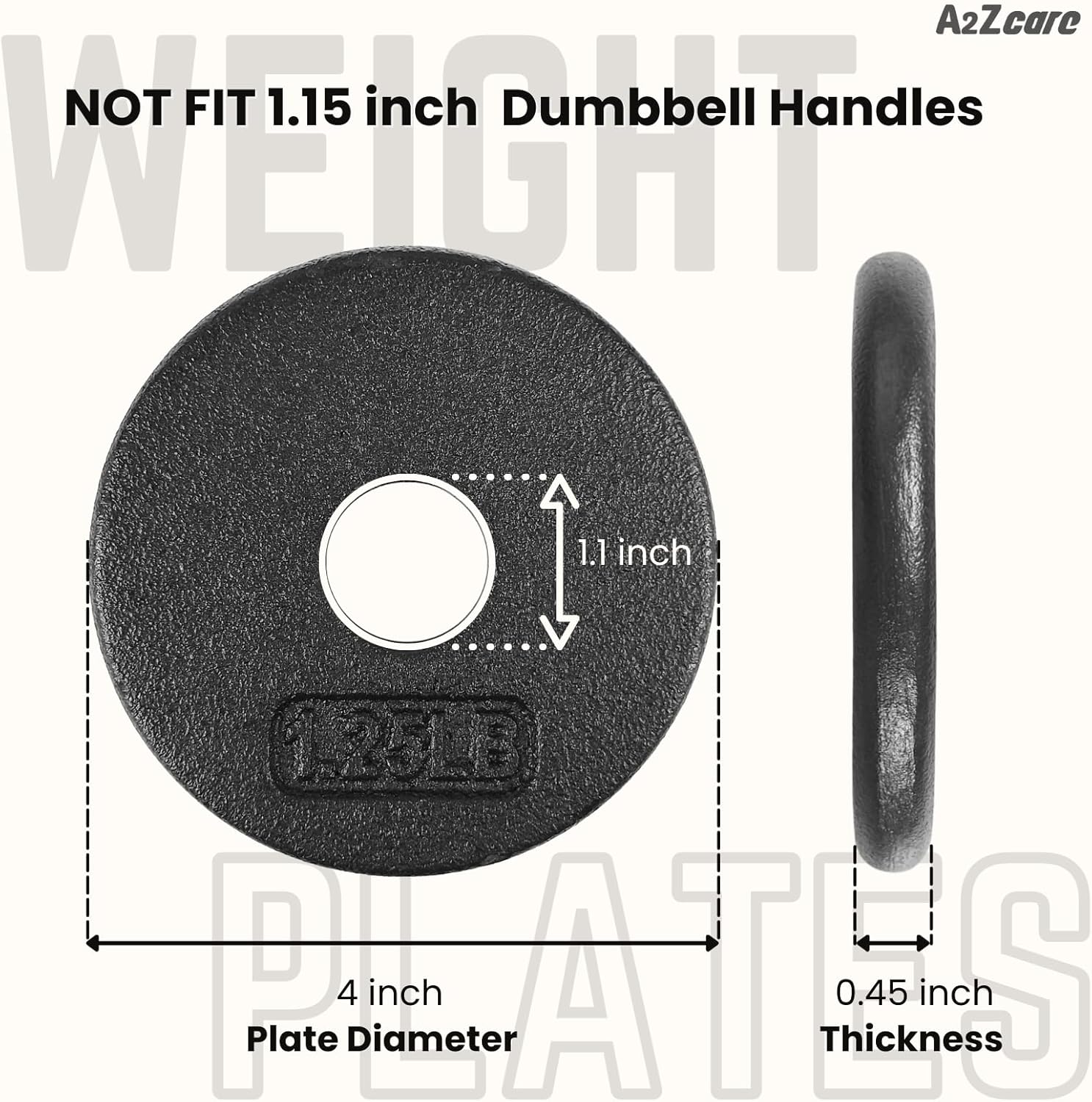 1 INCH CENTER HOLE CAST IRON WEIGHT PLATES – A2ZCare 1 inch weight plates match most traditional dumbbell handles or 1 inch dumbbell bars. Our dumbbell plates 1 inch CANNOT BE COMPATIBLE WITH ANY 1.15 INCH BAR.