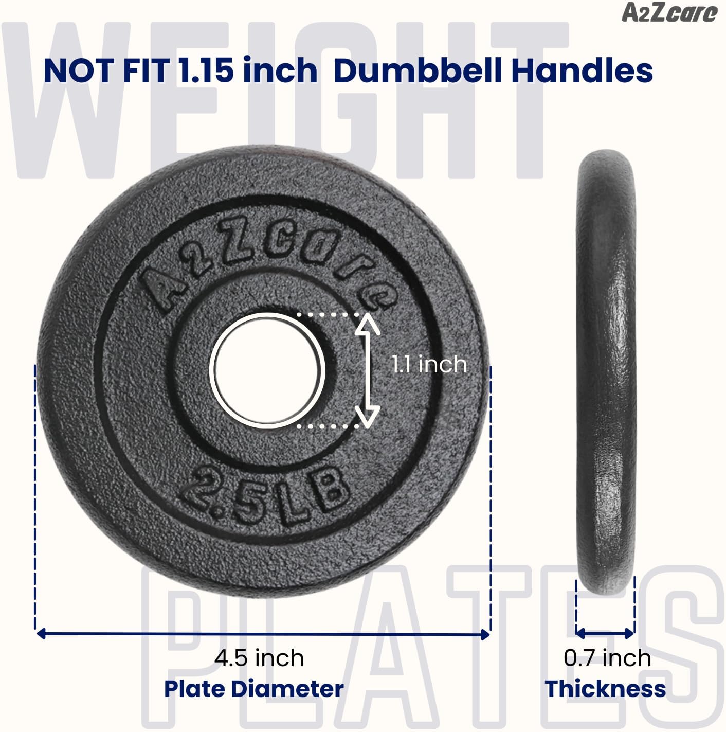 1 INCH CENTER HOLE CAST IRON WEIGHT PLATES – A2ZCare 1 inch weight plates match most traditional dumbbell handles or 1 inch dumbbell bars. Our dumbbell plates 1 inch CANNOT BE COMPATIBLE WITH ANY 1.15 INCH BAR.