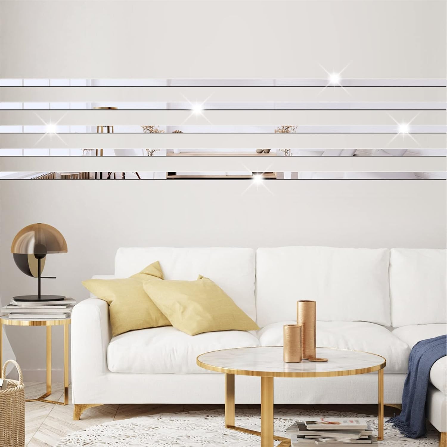 Line acrylic mirror stickers whole include :11 x 11 inches /sheet , 3 sheet (Line Measurement :10.9’’x0.9’’x30pcs).