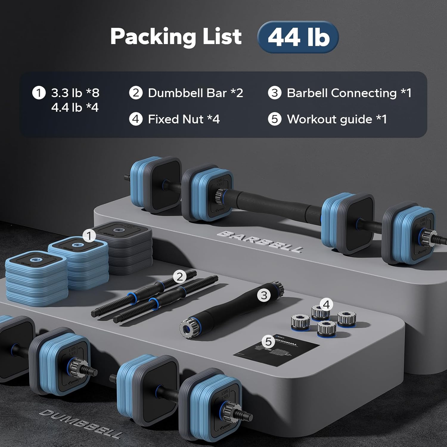 [Various Adjustable Weights] MERACH dumbbells set affords totally different weight mixtures. With detachable dumbbell plates, you’ll be able to shortly regulate the burden of particular person dumbbells. 44lbs particular person dumbbell adjustable weight vary of 5.5lbs-22lbs; barbell adjustable vary of 5.5lbs-44lbs This set of simple to put in health tools to fulfill the wants of various levels of your exercise depth.