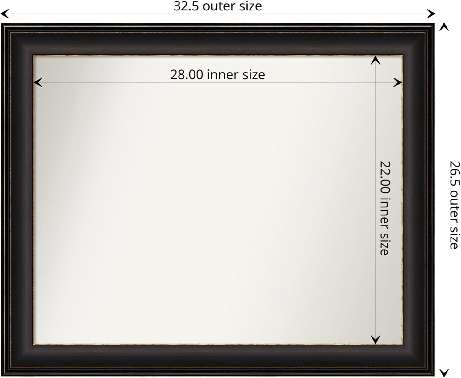 MIRROR DETAILS: This mirror options premium glass for a transparent, undistorted picture and has a non-beveled floor to maximise the viewing space. The general measurement of this wall mirror measures precisely 32.5 x 26.5 inches, together with the body. Its reflective space measures 28 x 22 inches.