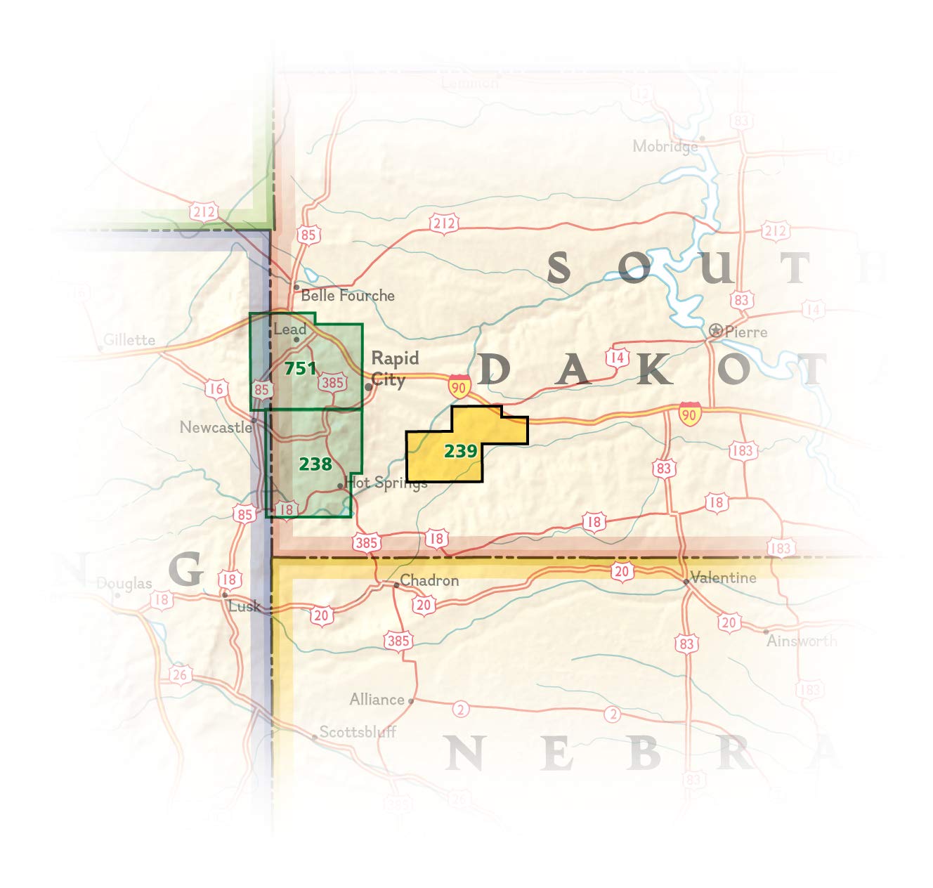 Different options discovered on this map embrace: Badlands Nationwide Park, Cedar Butte.