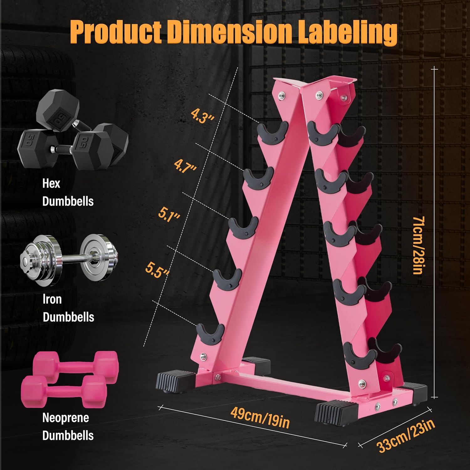 5 Pair Storage: Effectively organizes your private home fitness center by holding as much as 5 pairs of dumbbells, making it simple to maintain your exercise space tidy and clutter-free.