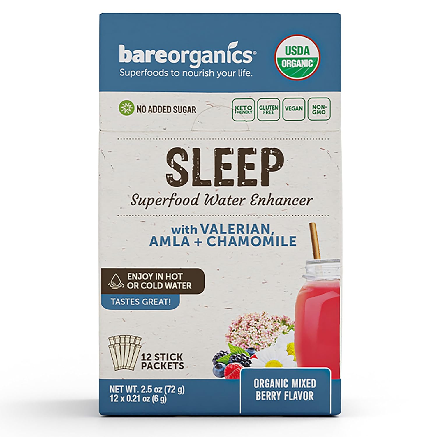 A scrumptious mix of herbs believed to help restful sleep, together with Valerian, passionflower, and Chamomile. BareOrganics’ Scrumptious mix is crafted that will help you go to sleep and keep asleep so that you simply awake every morning feeling your very best. It dissolves immediately into scorching or chilly water with a great-tasting Valerian,Amla+Chamomile taste you’ll be able to get pleasure from at residence or on-the-go. These statements haven’t been evaluated by the Meals and Drug Administration. This product shouldn’t be supposed to diagnose, deal with, remedy, or stop any illness.