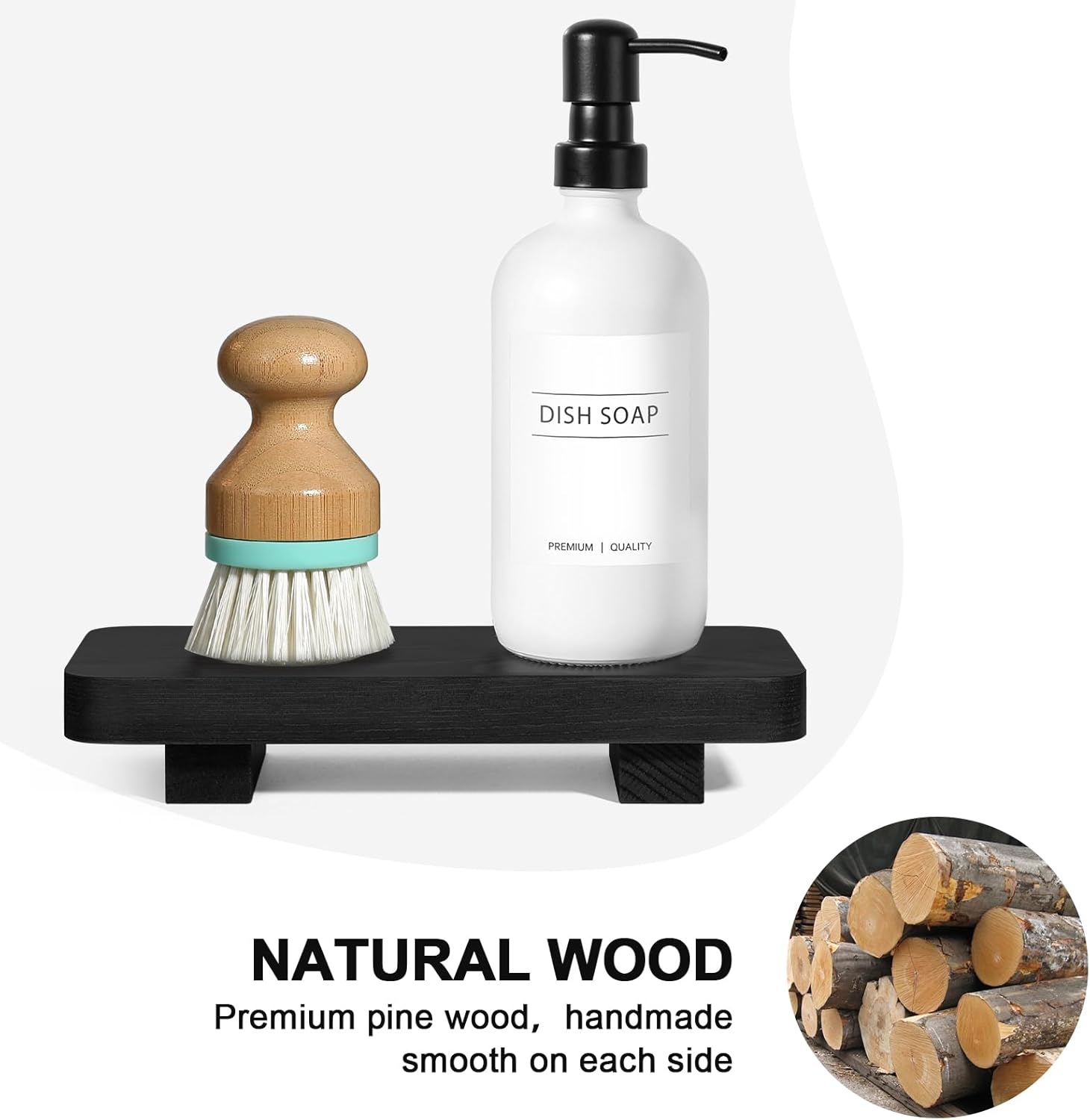 Rest room Counter Decor Black Wooden Tray Pedestal Stand Kitchen Sink 8″ x 3.7″