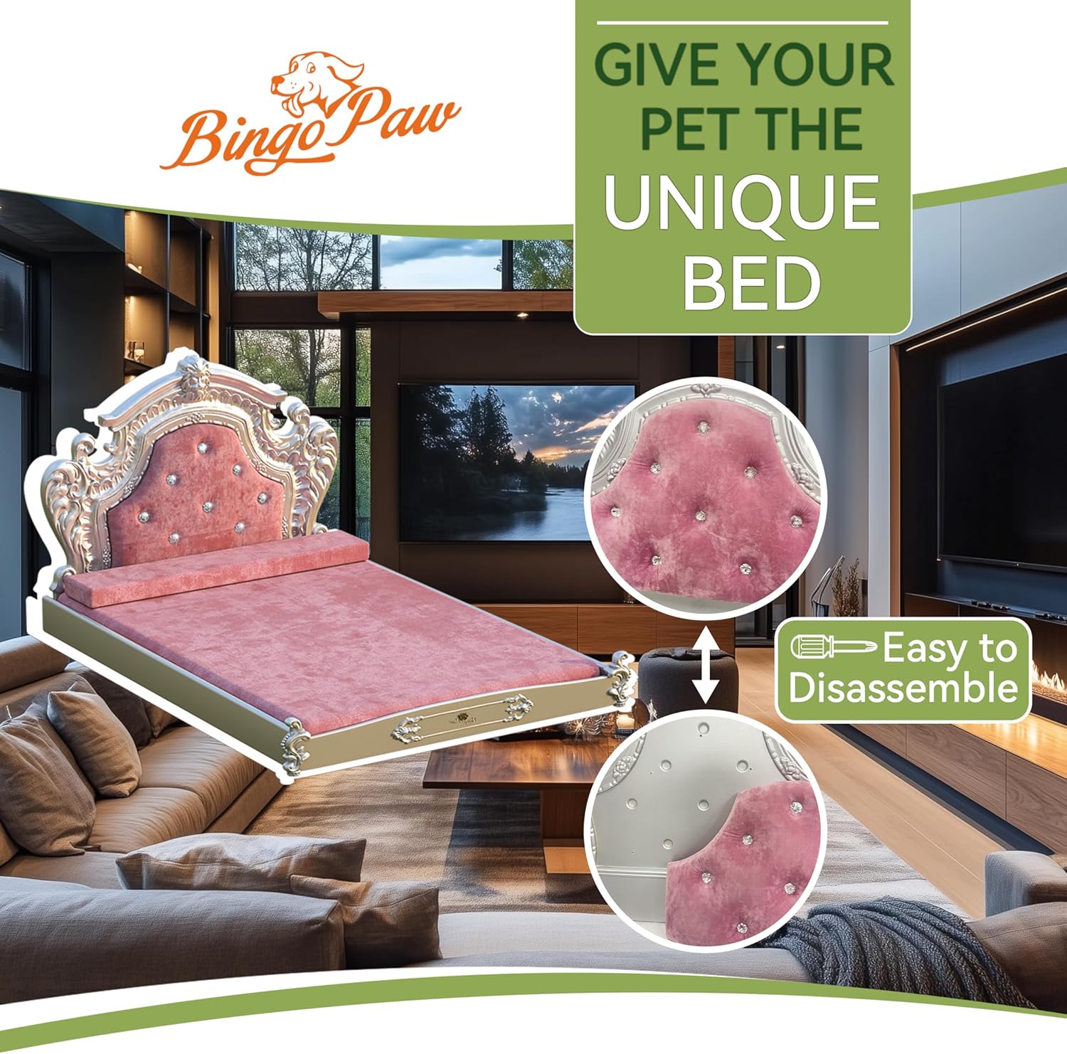 Luxurious Design – Impressed by opulent citadel designs, this pet mattress with headboard options beautiful carved particulars that rival human furnishings, the elegant headboard and body showcase intricate European-inspired scrollwork, bringing a contact of luxurious attraction to your own home, the ornate design seamlessly blends with numerous decor kinds, from traditional to modern, enhancing your own home’s aesthetic whereas offering your pet with an opulent haven match for the Aristocracy