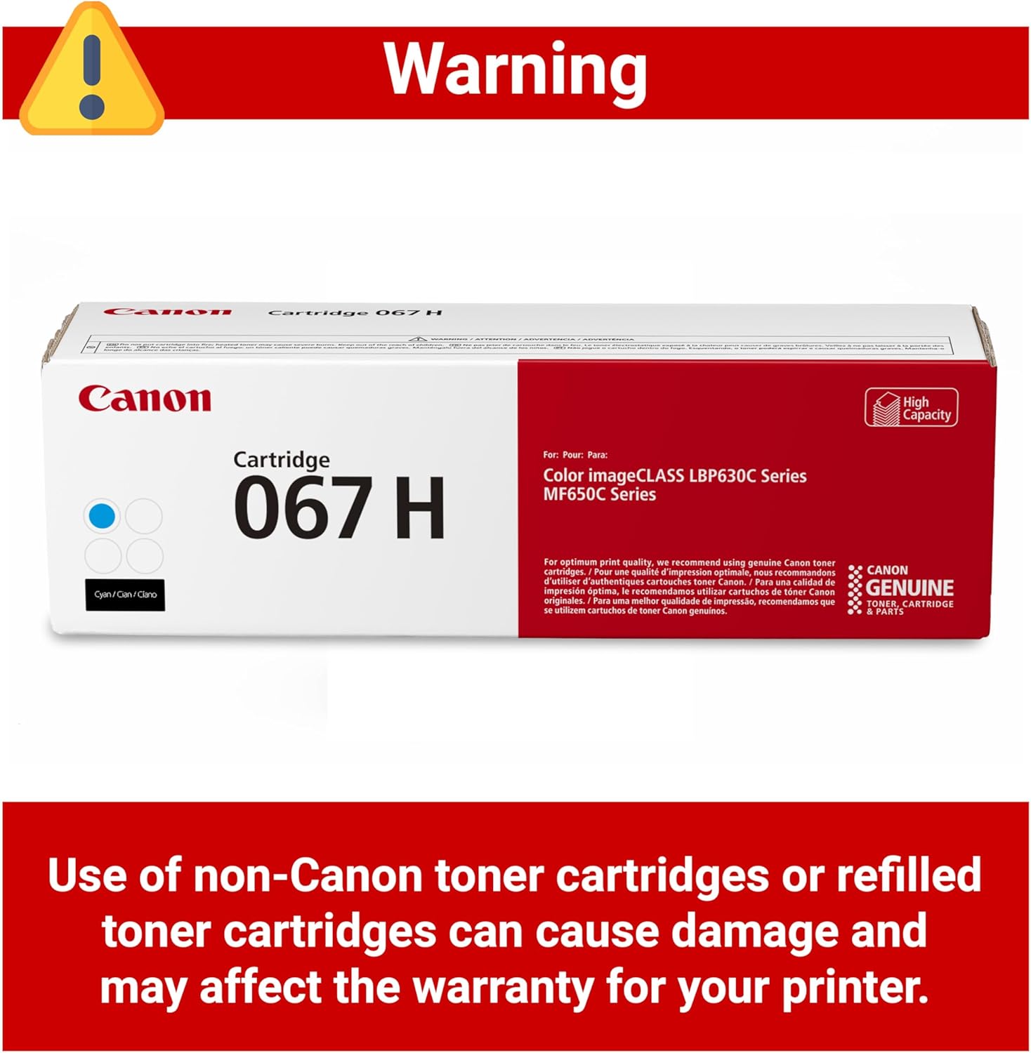 Use of non-canon toner cartridges or refilled toner cartridges could cause harm to your printer and should have an effect on the restricted guarantee for the product.