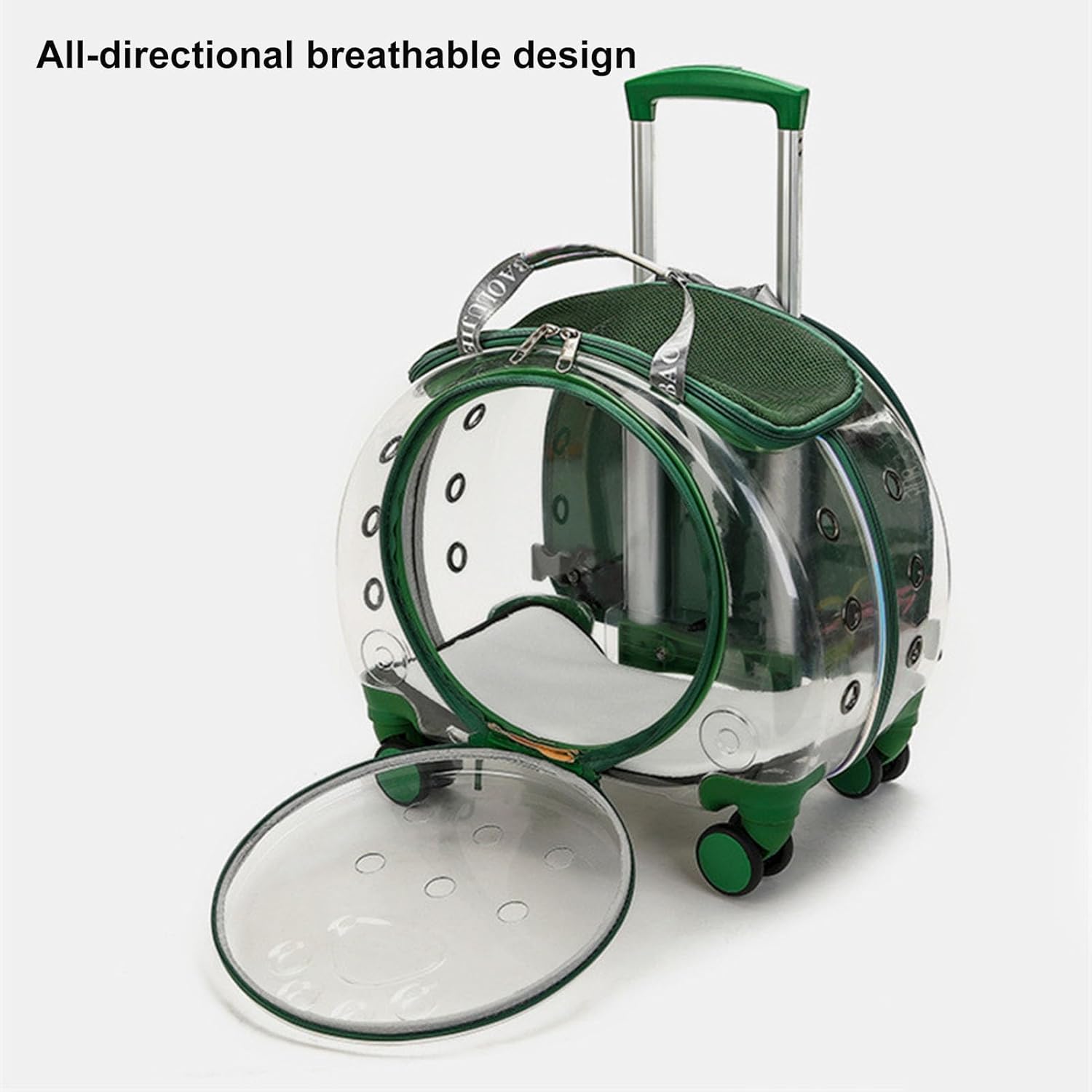 Cat Carrier with Silent Wheels Telescopic Handle, Transparent & Fully Breathable Pet Trolley Backpack,Pet Strollers for Small Dogs, Portable Cats Dogs Travel Backpack, Pet Rolling Carrier (Green)