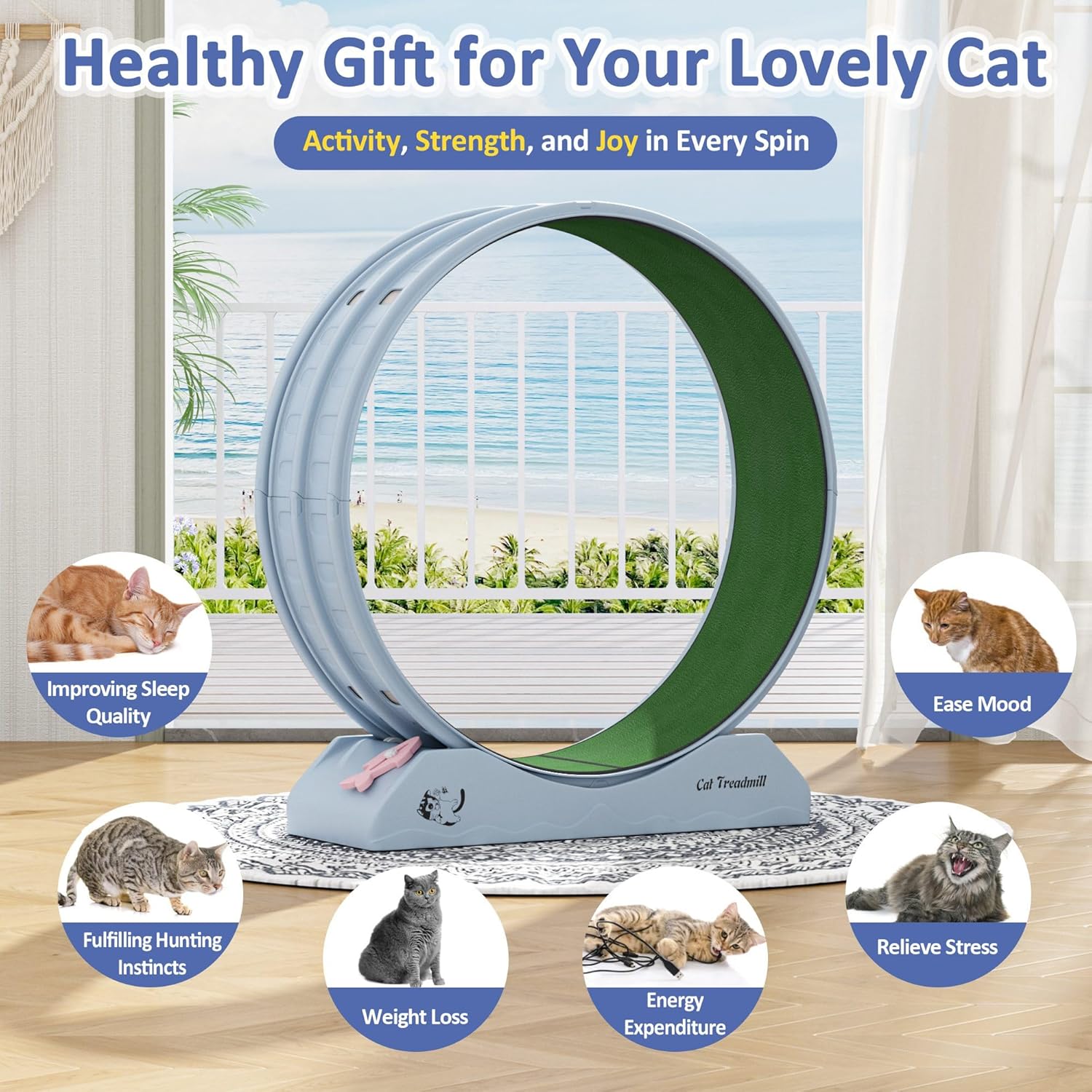 【Up to date Cat Wheel for All Sizes】Our cat wheels for indoor cats measure 39.4 x 13 x 42.1 inches with a big diameter of 31.5 inches to permit cats to run comfortably with out bending their our bodies an excessive amount of. Upgraded enhanced base is broad and strong sufficient to accommodate cats as much as 45 lbs. It will possibly assist a cat’s weight and face up to vigorous operating, making it good for cats of all sizes