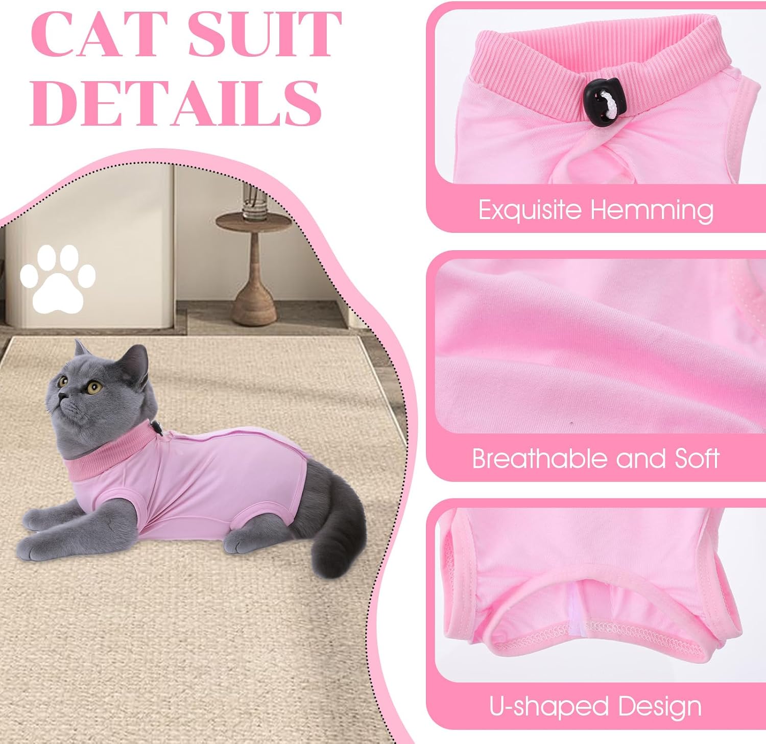 Cat Recovery Suit 2 Pcs Cat Onesie for Cats Surgery Kitten Onesie Bodysuit After Surgery Spay Surgical Abdominal Wound Skin Diseases Female Cats Suit E-Collar Alternative Wear (Pink-M)