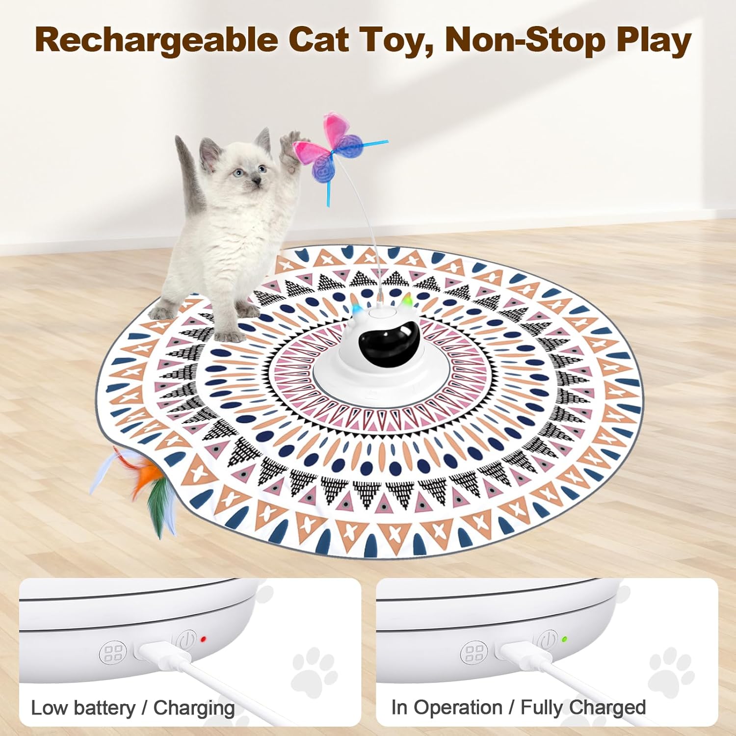 🐈【2-in-1 Cat Looking Toy for Indoor Cats】Xuyub interactive cat toy incorporates a spinning butterfly on the highest, a shifting feather hidden below the duvet. Each capabilities can work concurrently or individually. The various play choices guarantee your indoor cats get the psychological stimulation and bodily train