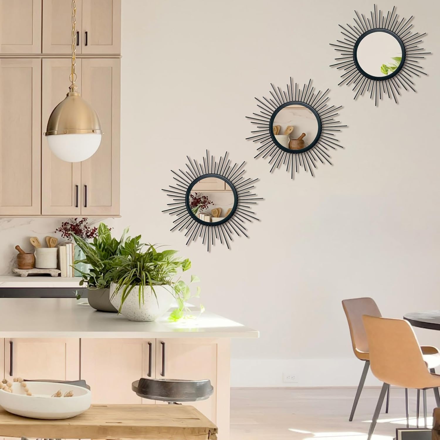 【 BLACK AND SHINY FINISH 】The end of those sunburst mirrors is simply the suitable shade of black between matte and shiny colour. Not flimsy or low cost wanting. They are going to provides some colour and attraction to a plain wall as a good residence ornament.