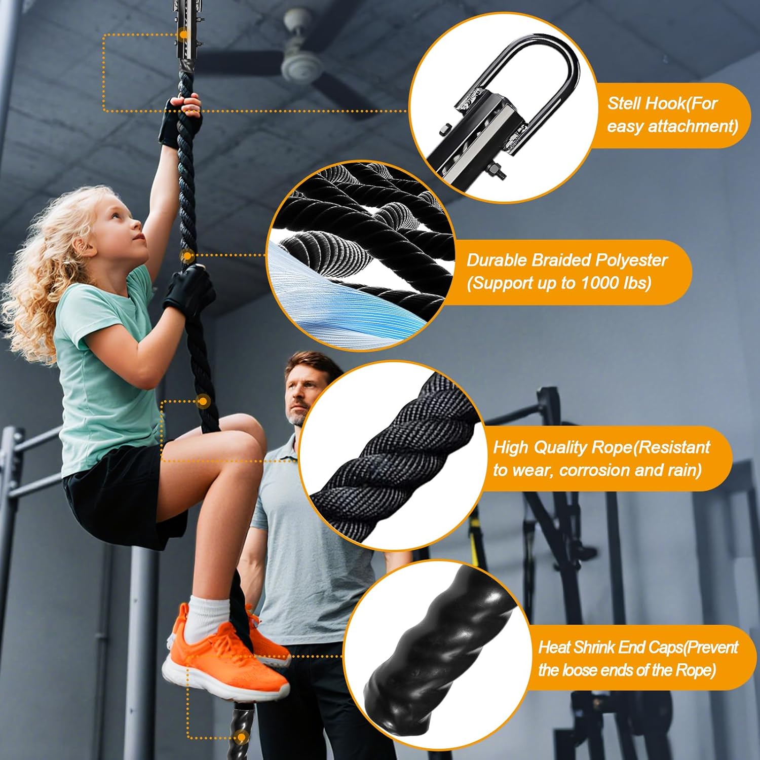 【Excellent Dimension】This climbing rope include 10ft size and 1.18-inch diameter which is thicker than different climbing ropes and likewise simpler to grip, the two.75-inch x 1.75-inch metallic loop attachment inside diameter makes for a sturdy anchor and is secure for each youngsters and adults, constructed with 3 stand twist design, resistance to abrasion and UV degradation. This climbing rope fitness center is ideal for any coaching workouts.