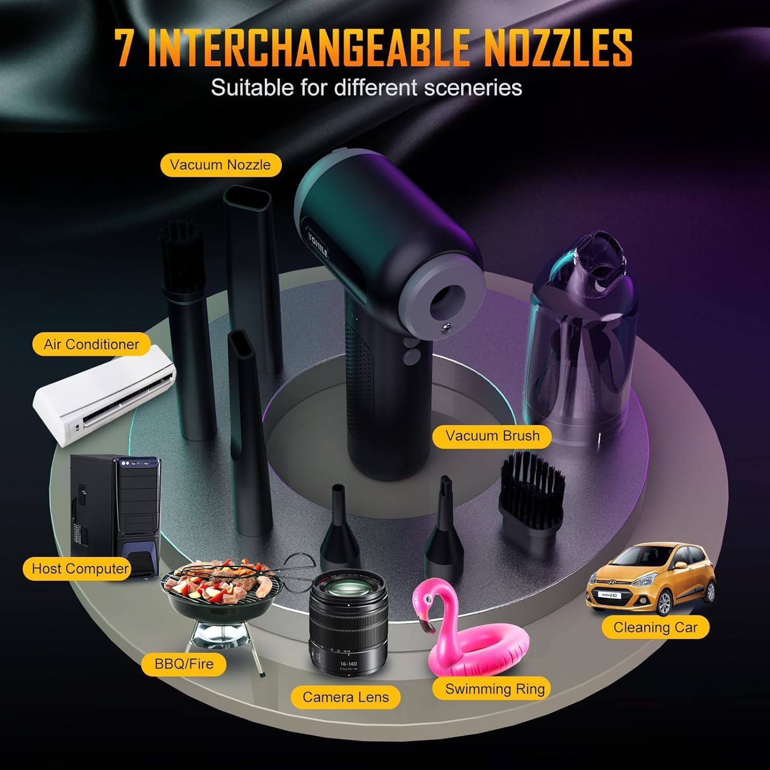 【Lengthy Lasting and Quick Charging】The eletric air duster has a built-in 9000mAh battery, which may run repeatedly for as much as 40 minutes. Comes with USB-C quick charging cable, absolutely charged inside 3-4 hours (Adapter is just not included, might be charged by any usb charger.)