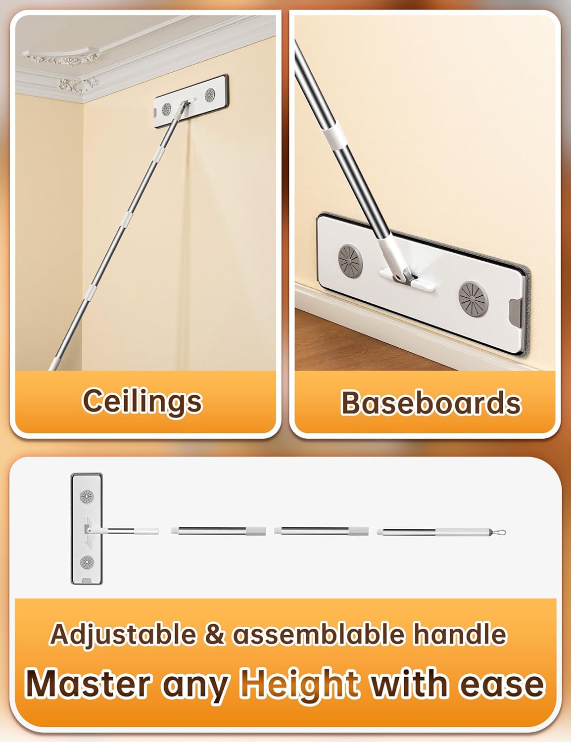 No Nook Missed: The 360° rotating mop head effortlessly cleans slim corners, baseboards, and ceilings. The system features a splash-proof rim to forestall spills and pooling, plus an adjustable extendable deal with (as much as 55.12 inches/140 cm) for snug upright cleansing posture
