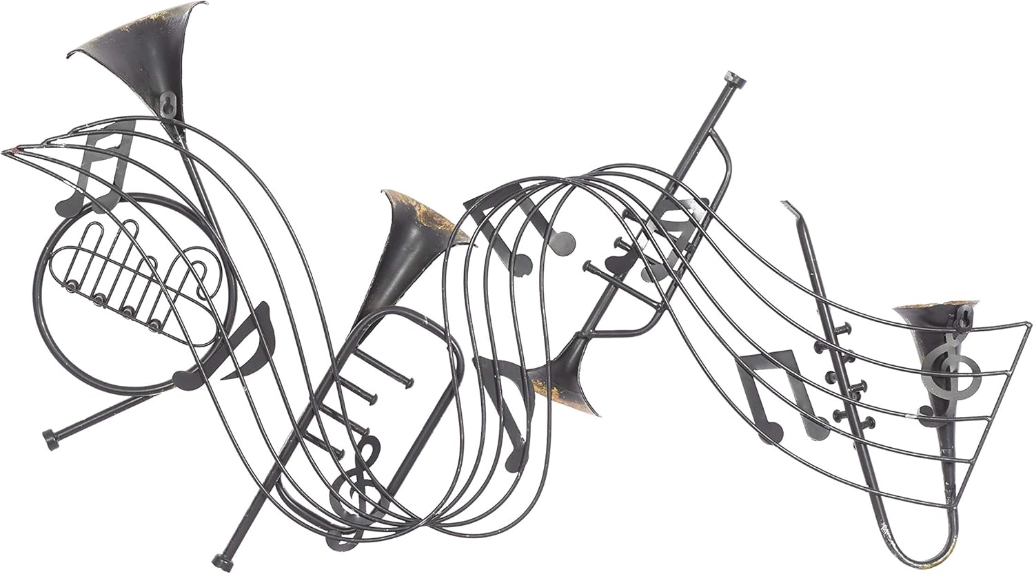 Aside from being a private wall decor at dwelling, this eclectic wall artwork additionally makes a singular present for musicians, music lovers, and eclectic inside householders. This merchandise ships in 1 carton. Shows a sax, french horn, trumpet, and musical notes. Iron wall decor makes an excellent present for any event. Could be hung horizontally utilizing the keyholes; nails and screws not included. Appropriate for indoor use solely. This merchandise ships totally assembled in a single piece. This can be a single brown coloured wall sculptures. Classic fashion.