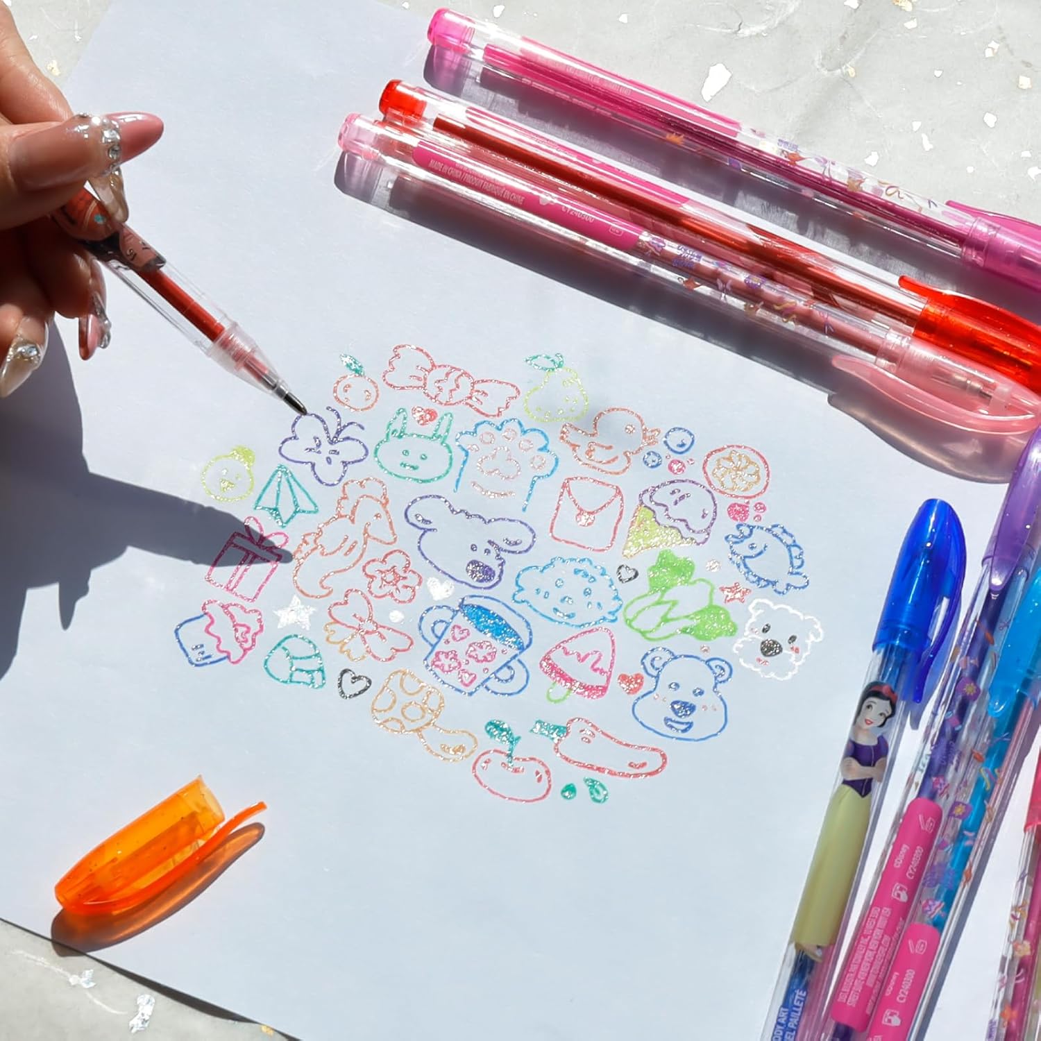 KIT INCLUDES: 16 glitter physique gel pens. Colours embody numerous shades of pink, inexperienced, blue, purple, black, gold, silver, and extra. All the colours your toddler must create a murals!