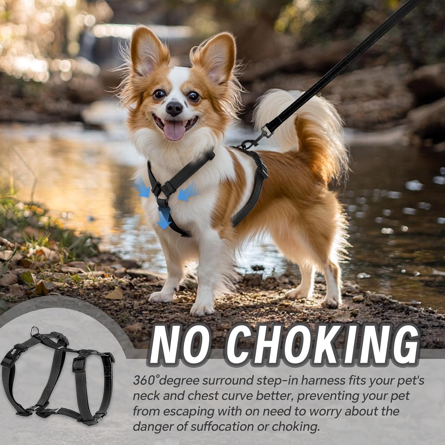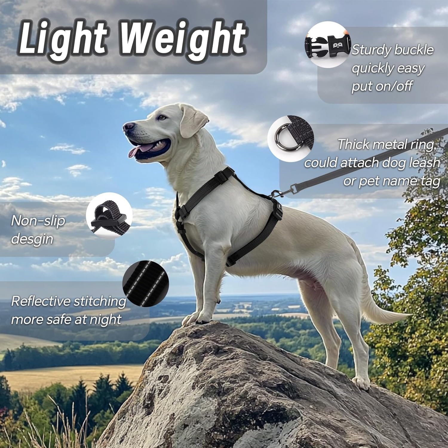 Inbuilt Reflective stitching: The harness set has two strains of reflective stitching alongside the highest and backside edges from webbing, They’re reflective which can assist defend them at night time. When it’s mirrored by mild, it can robotically emit mild to maintain your canine seen even at night time,providing peace of thoughts throughout your night strolls.