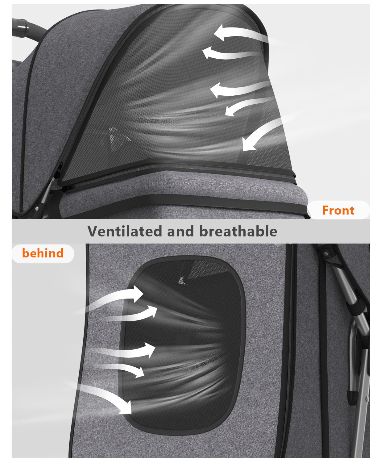 Superior Braking System – The 2 rear wheels of our pet stroller are geared up with brake safety units, so you’ll be able to park your stroller safely and securely even on inclined surfaces.