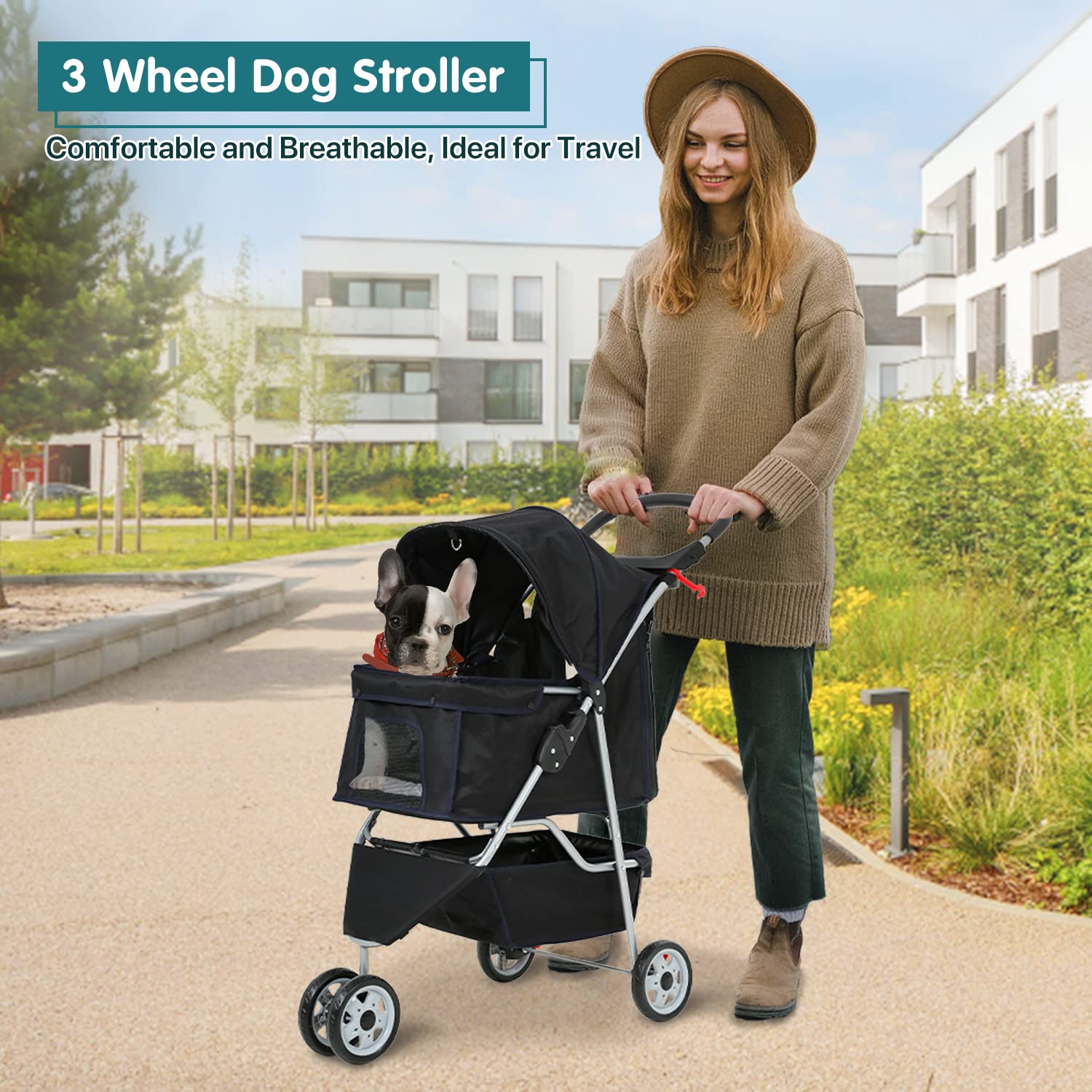 Double Pet Stroller for Cats Dogs 3 Wheels Lightweight Doggie Carrier Strolling Cart Folding Travel Animal Gear Carriage with Removable Liner Storage Ventilation, Double Decker Stroller, Black