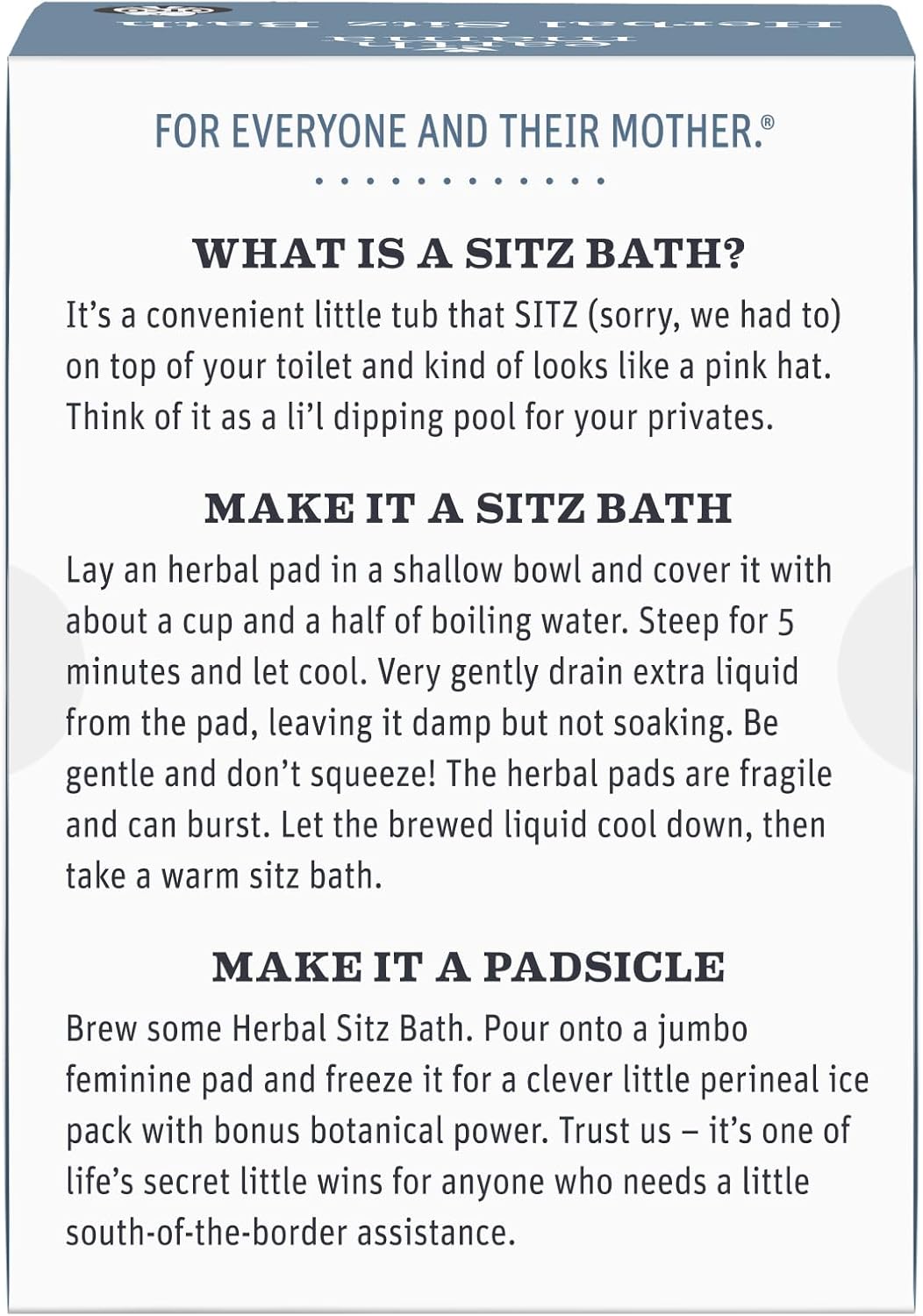 HELPFUL TIPS: Use the additional natural sitz tub resolution to make postpartum padsicles or pop the brewed natural sitz tub compresses into the fridge to chill, then apply on to your nether area.