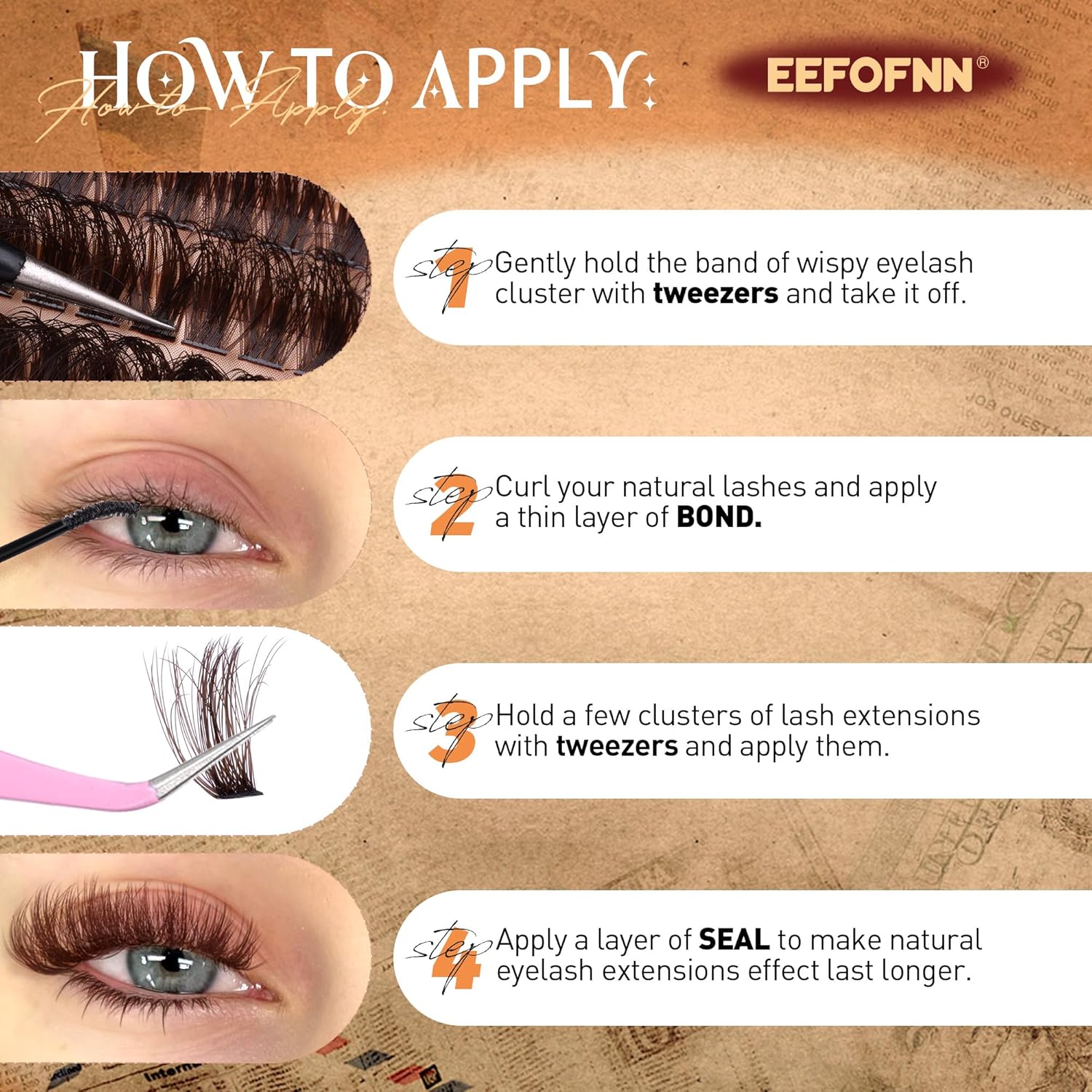 Eefofnn’ s Suggestions: Wispy, 50P, 60P and 80P pure lash clusters and backside lashes are appropriate for each day life, events and journey. When you’ve got new concepts about brown lash extensions and d curly lash clusters, please inform us in time