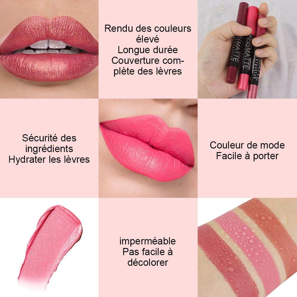 ❤【3Pcs Silky Velvet Matte Crayon Lipstick Set】It’s Velvet Matte lipstick set.Silky like chocolate,Light-weight texture, and intense hydration provide a zero-gravity silky really feel.