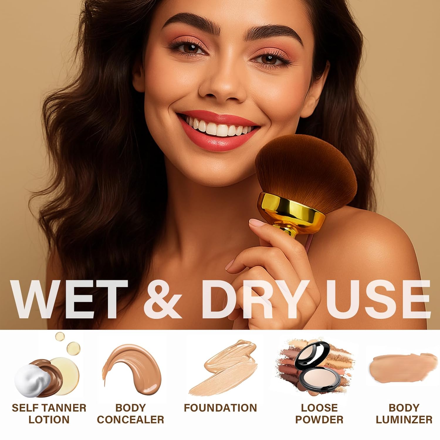 ESSENTIAL BRUSH FOR BEAUTIFUL: Extremely-soft huge powder brush & contour brush for the final word consolation environment friendly streak-free utility. Good for utilizing a tanning lotion, sunscreen, tanning foam,self tanner or any self tan again utility. Good for flawless make-up for powder, liquid, concealer, cream, blush, concealer, basis, contour and physique shimmer powder. Solely a small amount of basis on the comb is required for the very best outcomes