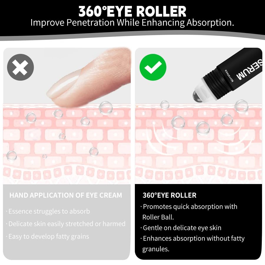 Eye Curler for Puffy Eyes: Incorporates a cooling curler that easily applies the serum, immediately soothing drained eyes and lowering puffiness for fast rejuvenation.